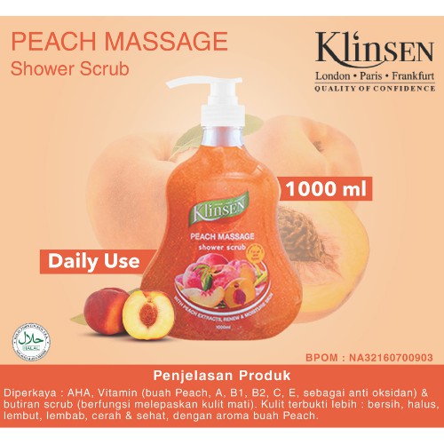 KLINSEN Shower scrub / sabun mandi peach 1000 ML