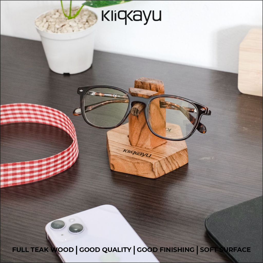 KLIQKAYU Kacamata Holder | Stand Kacamata Kayu Jati Asli | Wood Stand Glasses