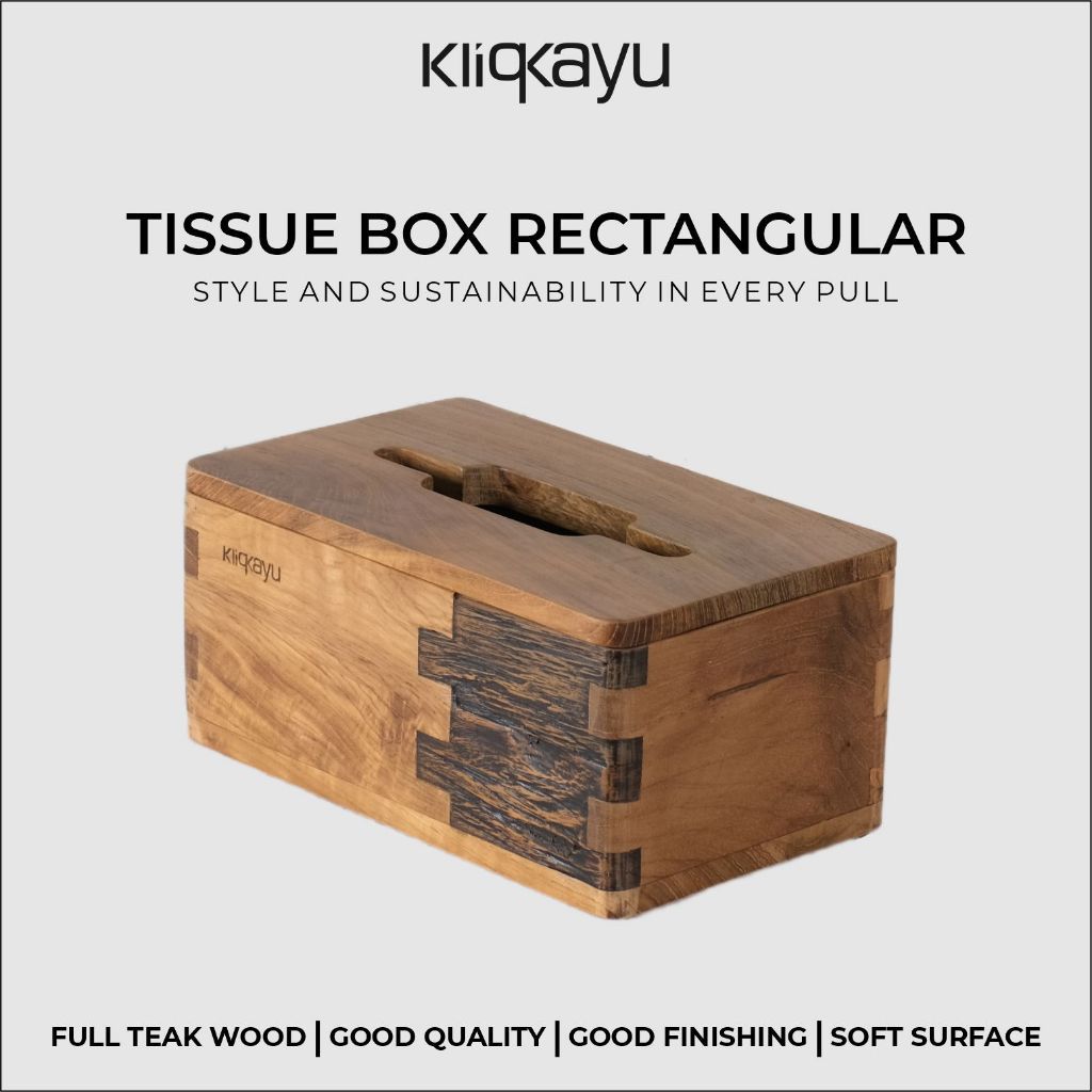 KLIQKAYU Wooden Box Tissue Teak Wood Tempat Tisu Kotak Tisu Kayu Jati Asli Aesthetic