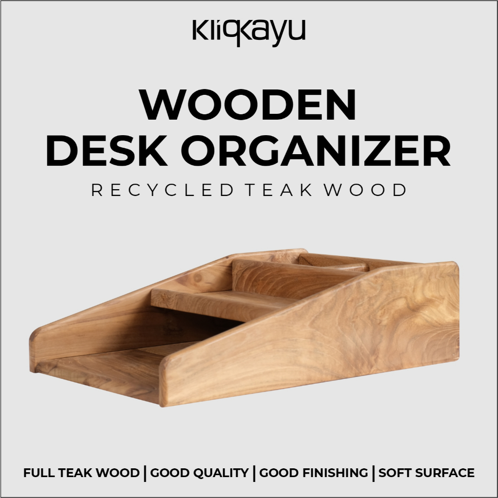 KLIQKAYU Wooden Desk Organizer | Tempat Penyimpanan Dokumen, Kertas, & Peralatan Lainya I Kayu Jati