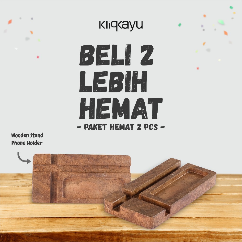 KLIQKAYU Wooden Phone Holder Teak Wood Stand Penyangga Dudukan HP Kayu jati Smartphone Kayu 8.8x18cm