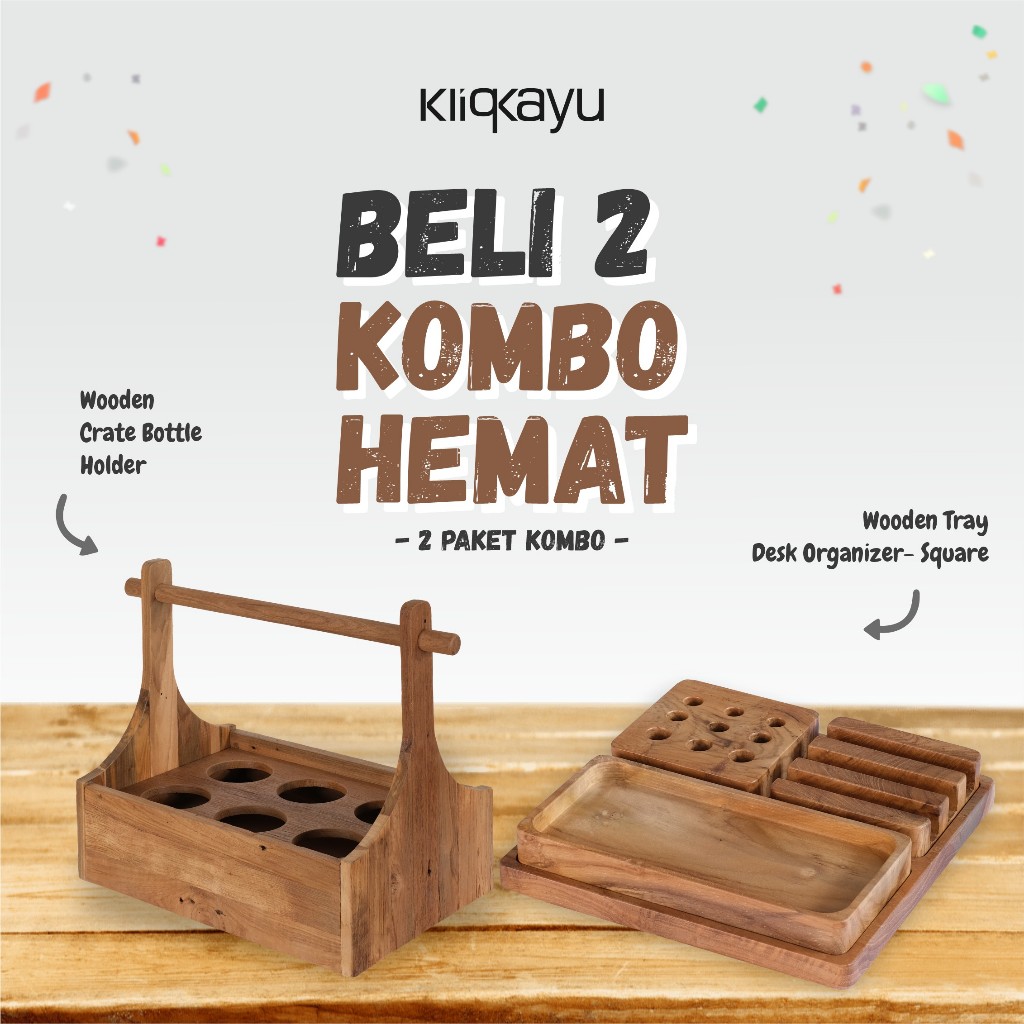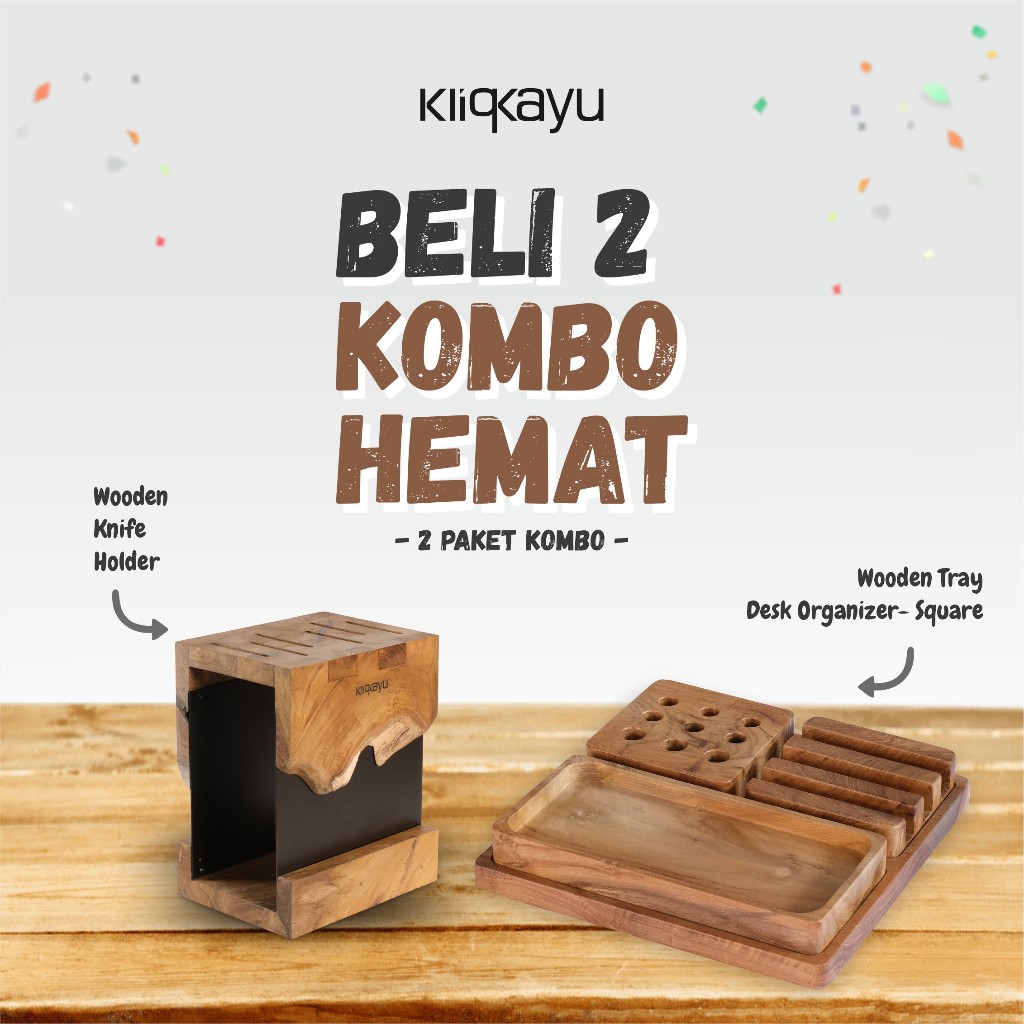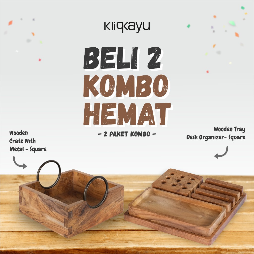 KLIQKAYU Wooden Tray Desk Organizer Square 3in1 20x20cm Kayu Jati Full Teak Wood