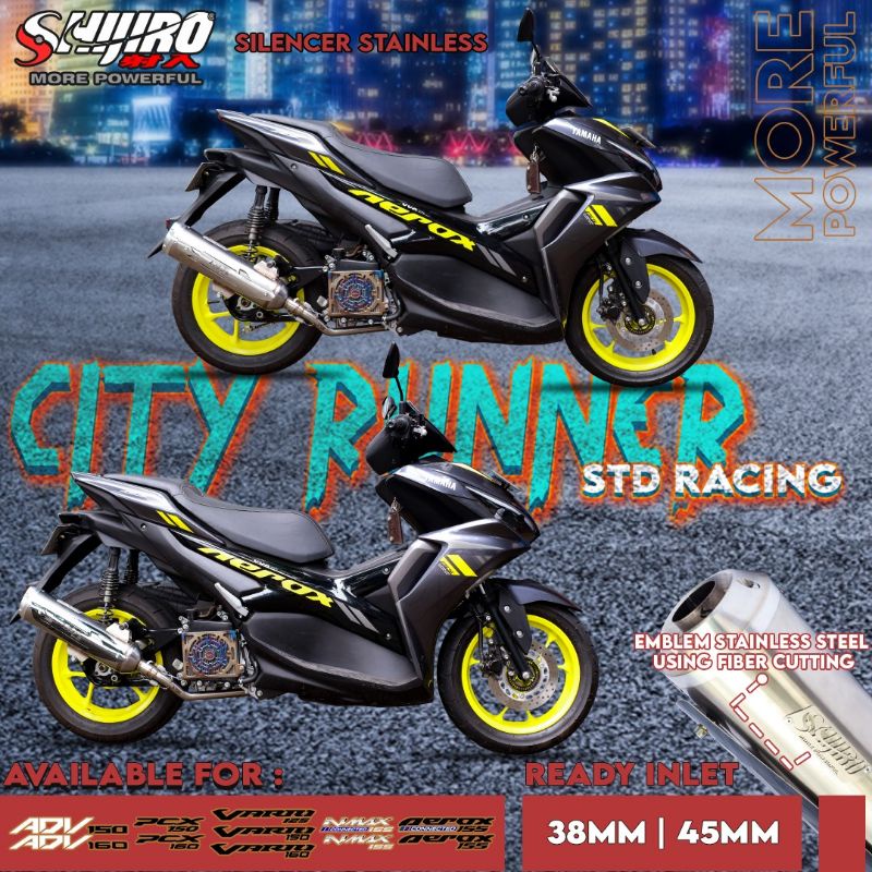 KNALPOT STANDAR RACING SHIJIRO TYPE CITY RUNNER STAINLESS FOR AEROX N-MAX VARIO PCX ADV STYLO AEROX TURBO N-MAX TURBO