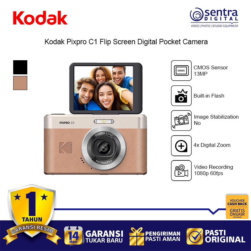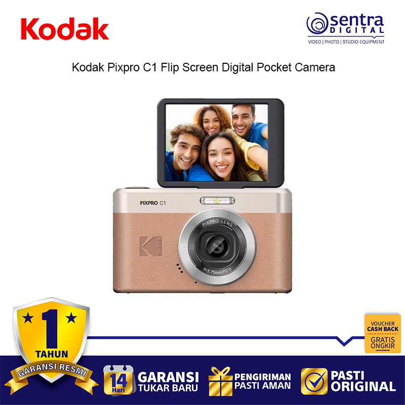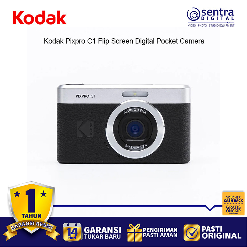 KODAK PIXPRO C1 Flip Screen Digital Pocket Camera | Kamera Digital Retro Estetik untuk Vlogger Pemula | Ringan Mudah Dibawa | Video Jernih