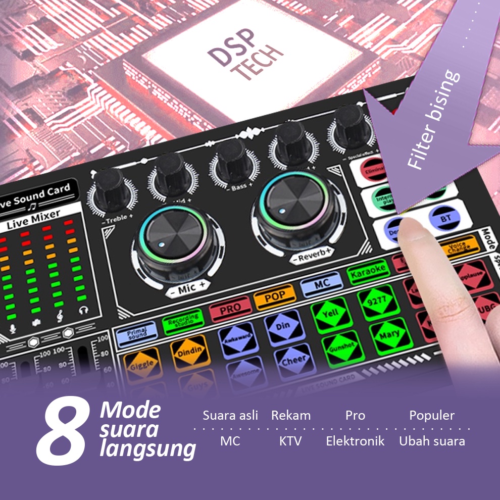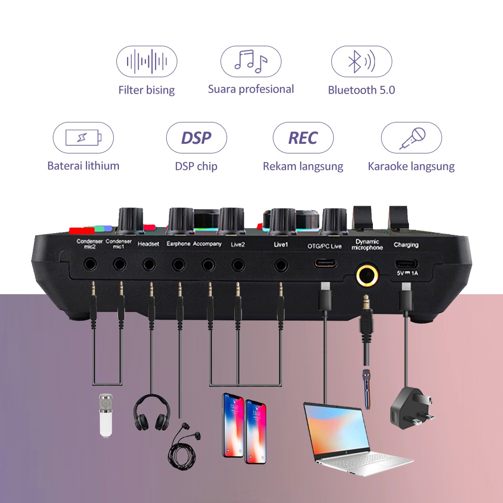 KODE F25R Bonkyo F999 sound card set Peralatan Bernyanyi atau siaran langsung dengan headphones dan microphone