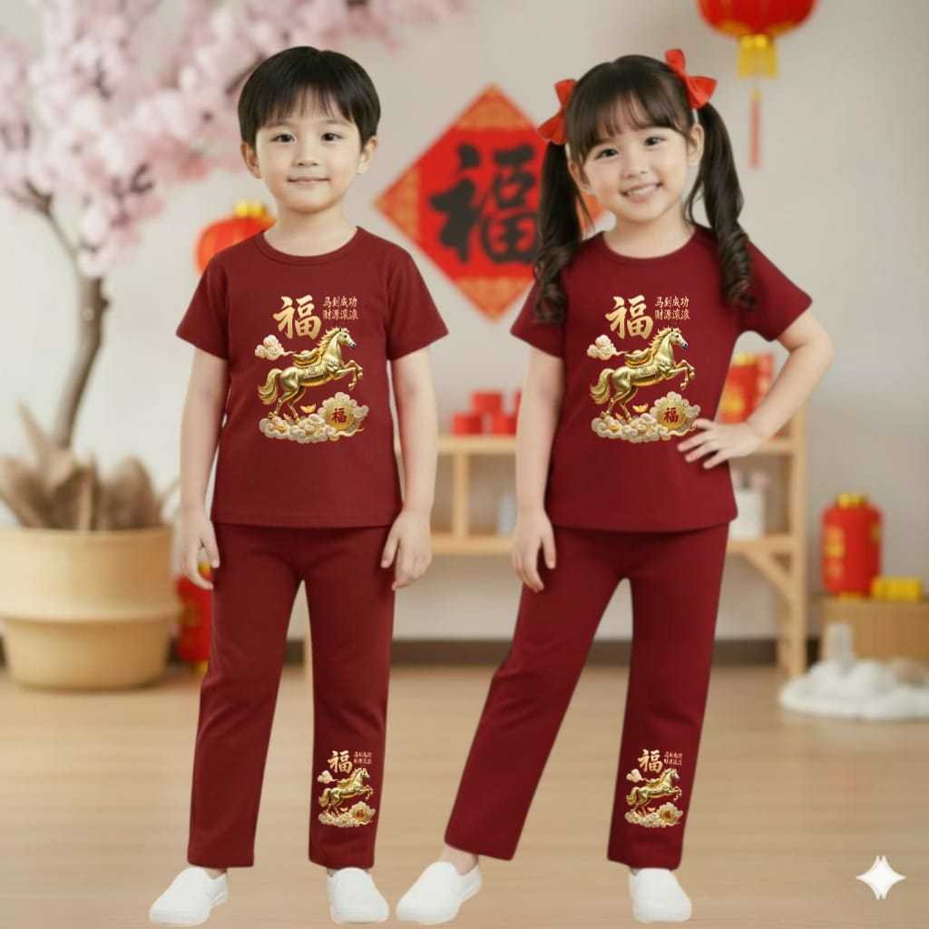 KOI - SETELAN CELANA PANJANG ANAK COWOK & CEWEK IMLEK 2026 /CNY YEAR OF THE HORSE/SETELAN IMLEK ANAK TAHUN KUDA