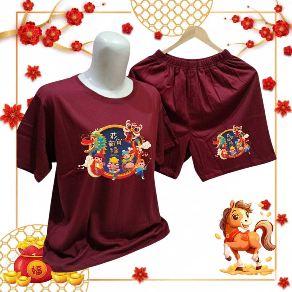 KOI - SETELAN IMLEK 2026 CELANA PENDEK SETELAN DEWASA CEWEK COWOK CELANA PENDEK TAHUN KUDA