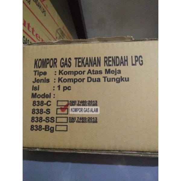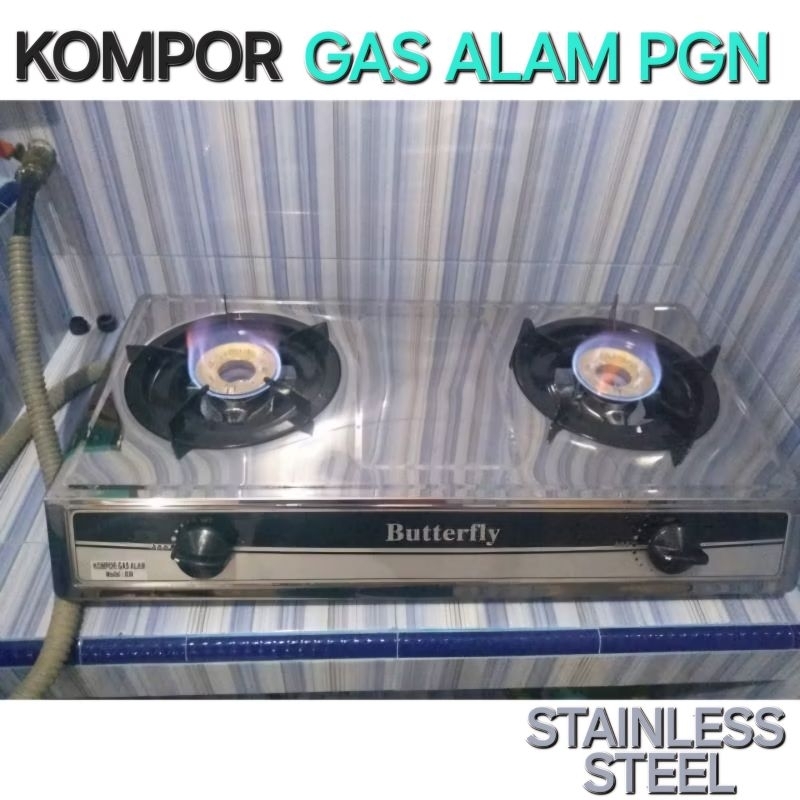 KOMPOR GAS PGN GAS ALAM GAS BUMI 2 TUNGKU (Non LPG) Stainless Steel Merk Butterfly 838s GA SNI Murah Bergaransi