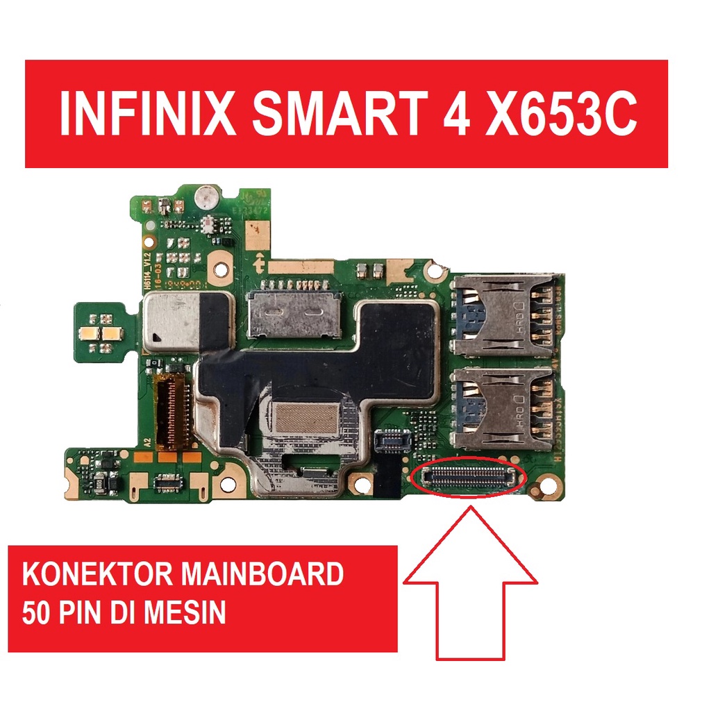 KONEKTOR MAINBOARD INFINIX SMART 4 X653c 50 PIN DI MESIN FPC CONNECTOR MAINBOARD ON BOARD 1 PCS
