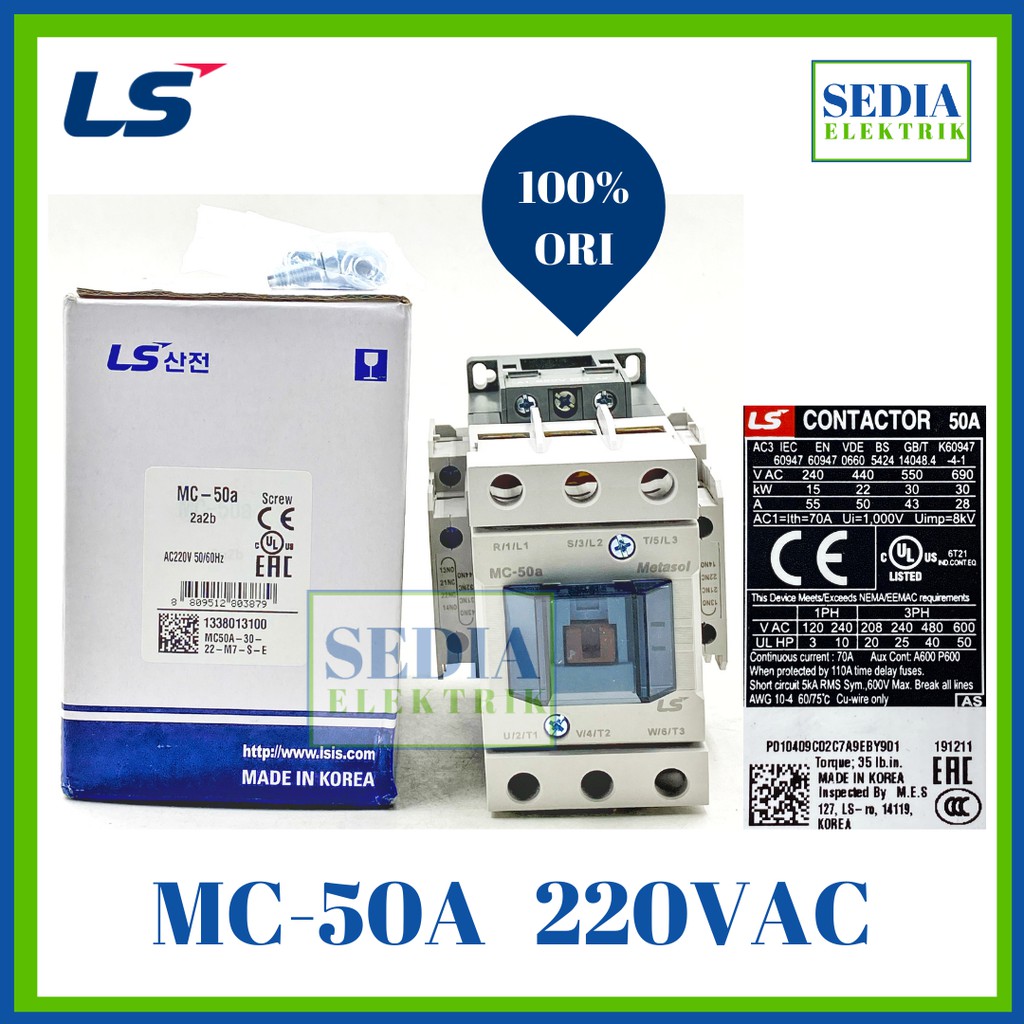 KONTAKTOR CONTACTOR LS MC-50A 220VAC MC 50A MC50A 3 KUTUB NO NC