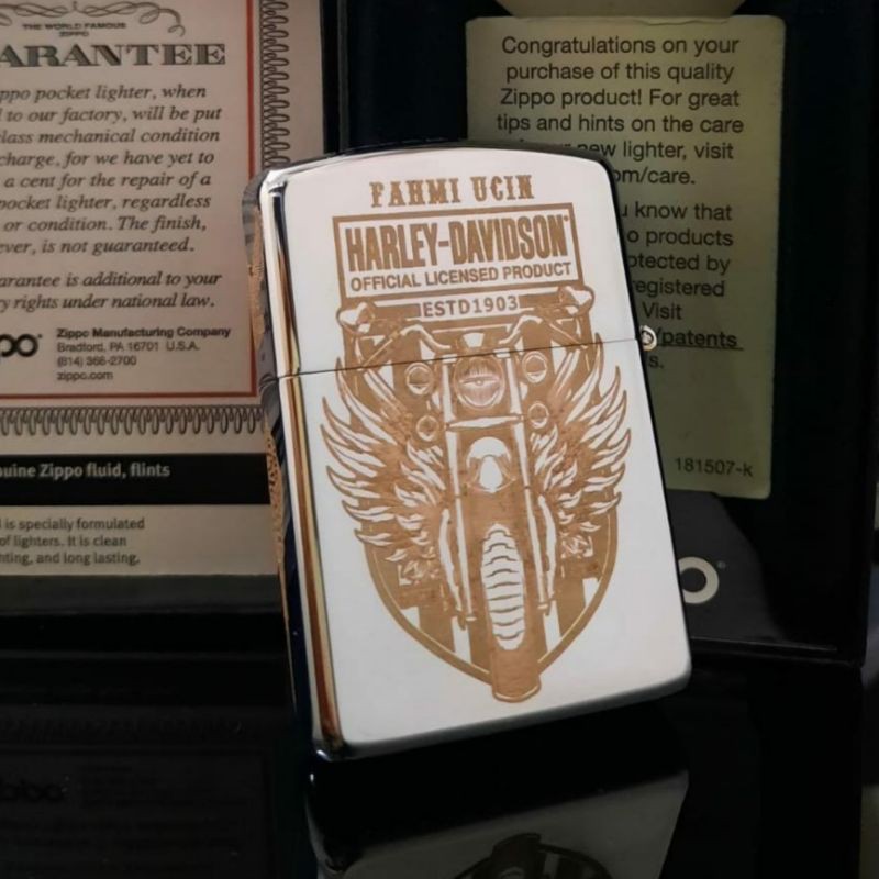 KOREK API ZIPPO HARLEY DAVIDSON DESIGN GRAFIR 5 SISI GRATIS REQUEST CUSTOM GRAFIR NAMA ANDA