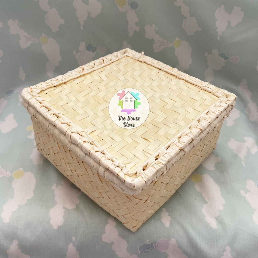 KOTAK ANYAMAN BAMBU DENGAN TUTUP / KOTAK MAHAR / KOTAK HAMPERS UKURAN SEDANG 20CM
