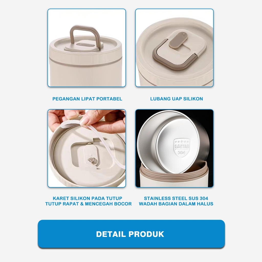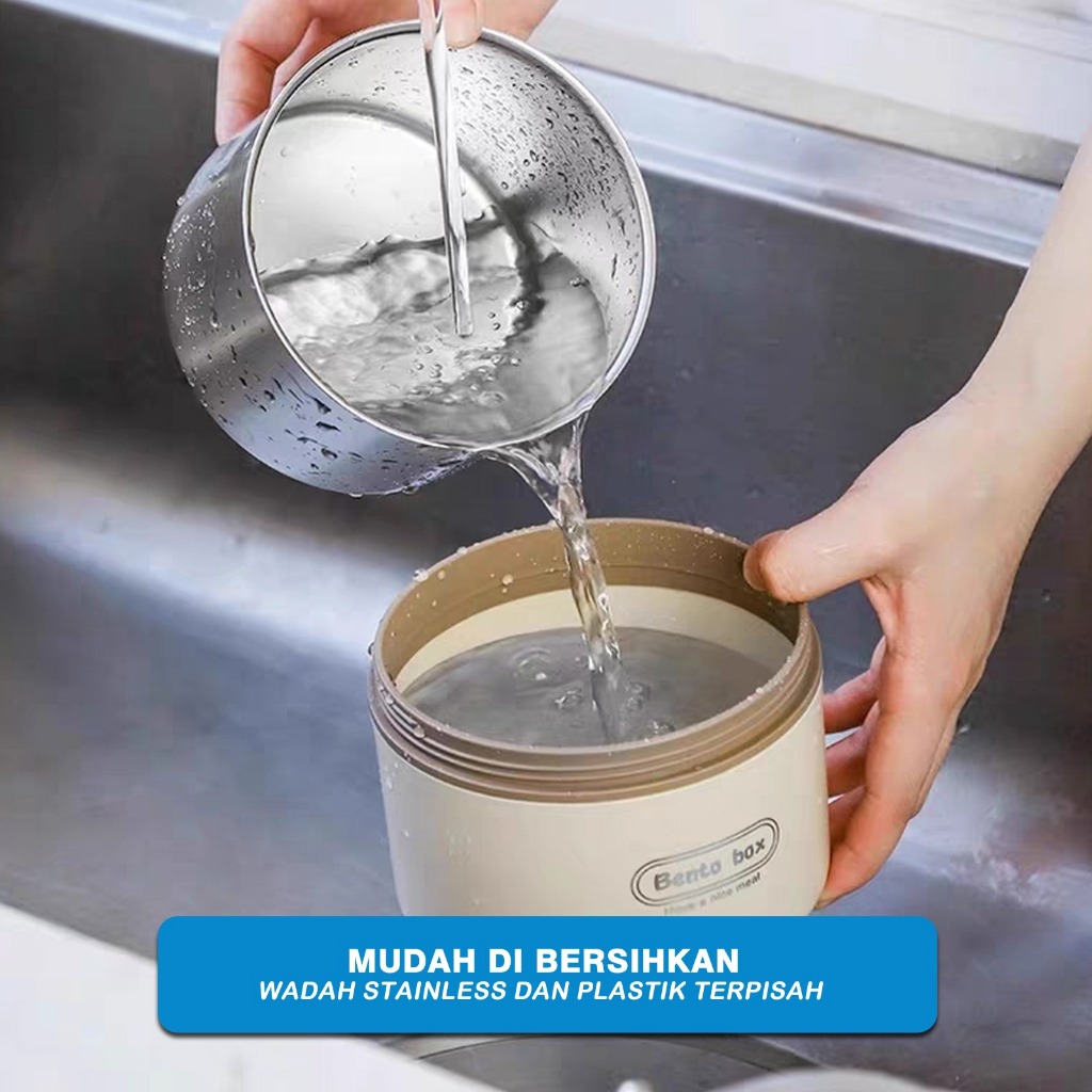 KOTAK MAKAN PORTABLE TEMPAT BEKAL MULTIFUNGSI LUCH BOX STAINLESS DUA LAPIs