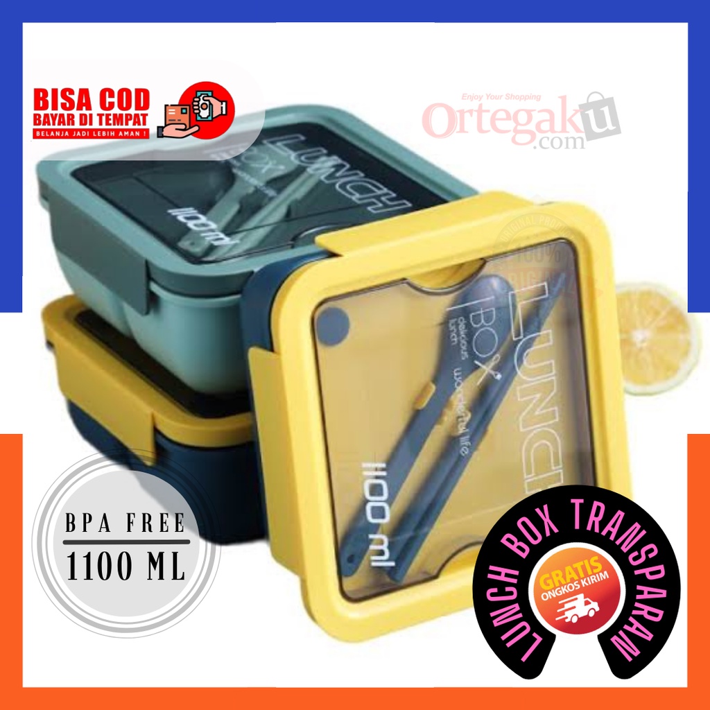 KOTAK MAKAN TRANSPARAN BENTO BPA FREE 1100ML MURAH | LUNCH BOX SET ANAK TUPPERWARE ANTI TUMPAH | TEMPAT MAKAN 2 SEKAT, Kotak Makan Plastik Anak, Kotak Makan Transparan Bento Box 900ml, 1500ml