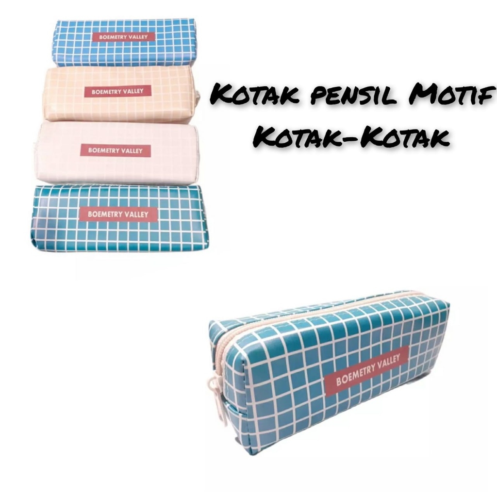 KOTAK PENSIL MOTIF KOTAK KOTAK / POUCH / KOTAK PENSIL . MURAH