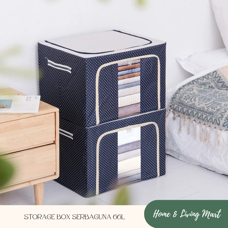 KOTAK PENYIMPANAN 24L 66L TEMPAT PAKAIAN TEMPAT BAJU TEMPAT MAINAN STORAGE BOX LARGE BOX POLKADOT