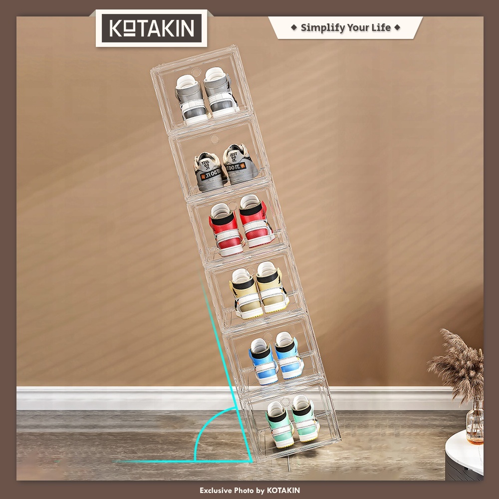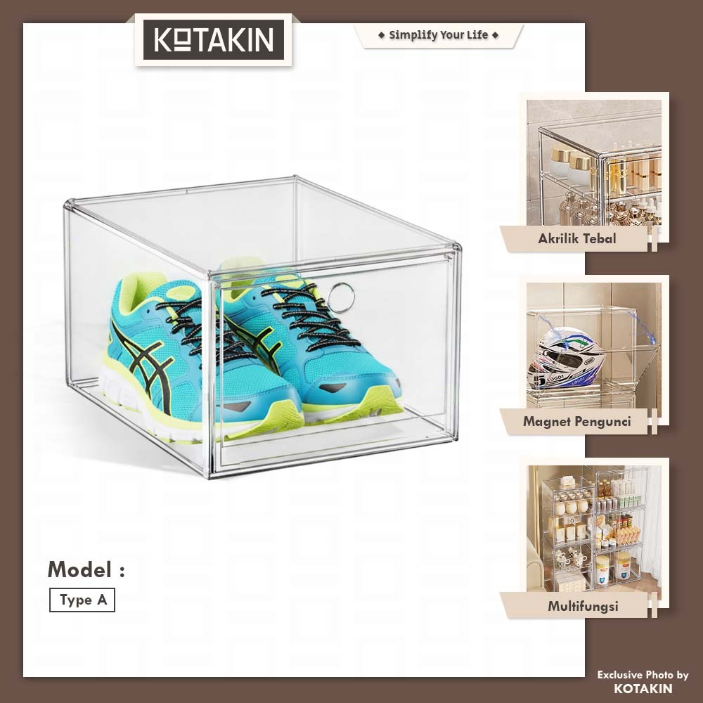 KOTAKIN Kotak Sepatu Serbaguna Rak Transparan Akrilik Box Tertutup Tebal Tempat Tas Sendal Kokoh