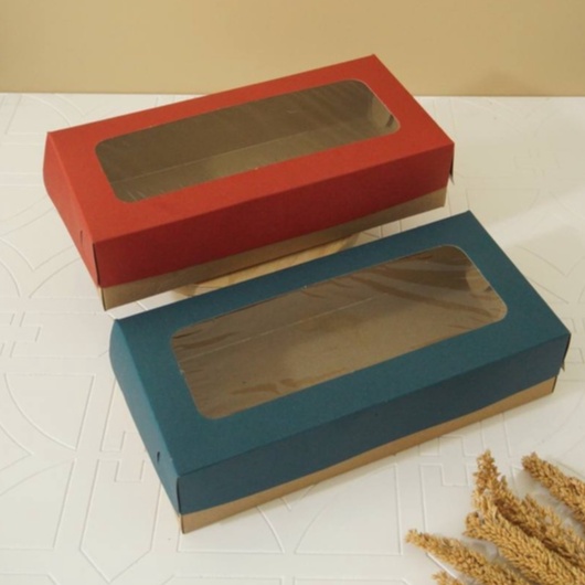 KRAFT SOUVENIR KARDUS / BOX COKLAT DOS DUS KOTAK LONG BOX SPIKU ROTI MERAH dan BIRU CNY (RED&BLUE) - isi 10 pcs