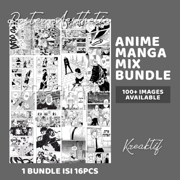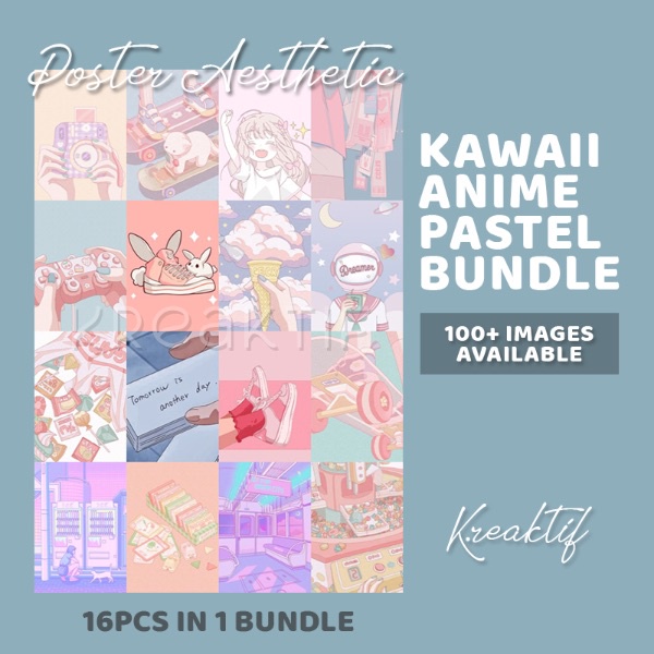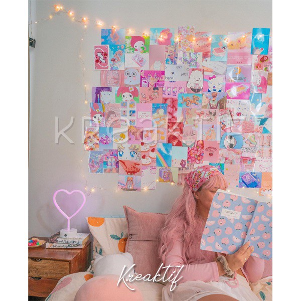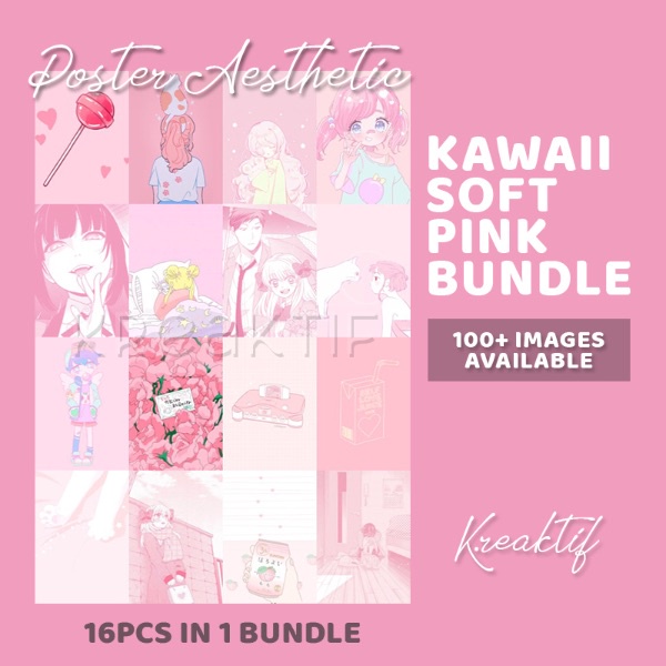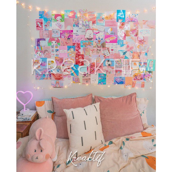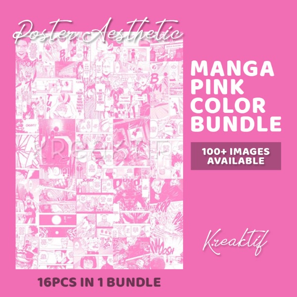 KREAKTIF Poster Aesthetic Manga Anime Kawaii Komik - Wall Decor Collage Kit - Pastel Soft Pink