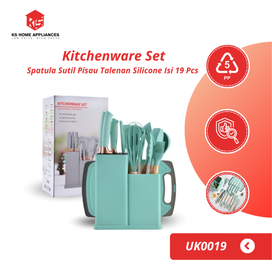 KS Kitchenware Set Spatula Sutil Pisau Talenan Silicone Isi 19 Pcs