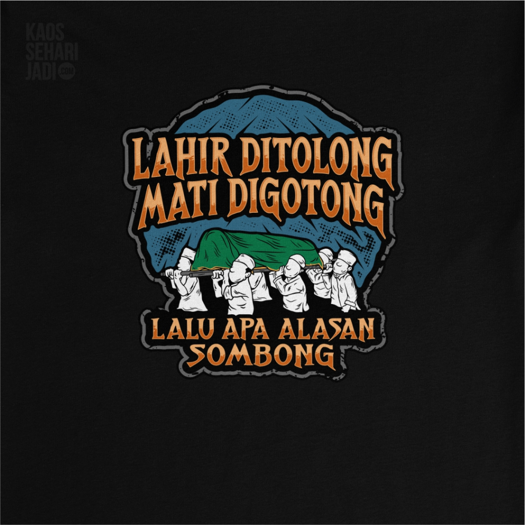 KSJ T-shirt Lahir Ditolong Mati Digotong Lalu Apa Alasan Sombong Graphic Baju Kaos Pria Wanita Hitam