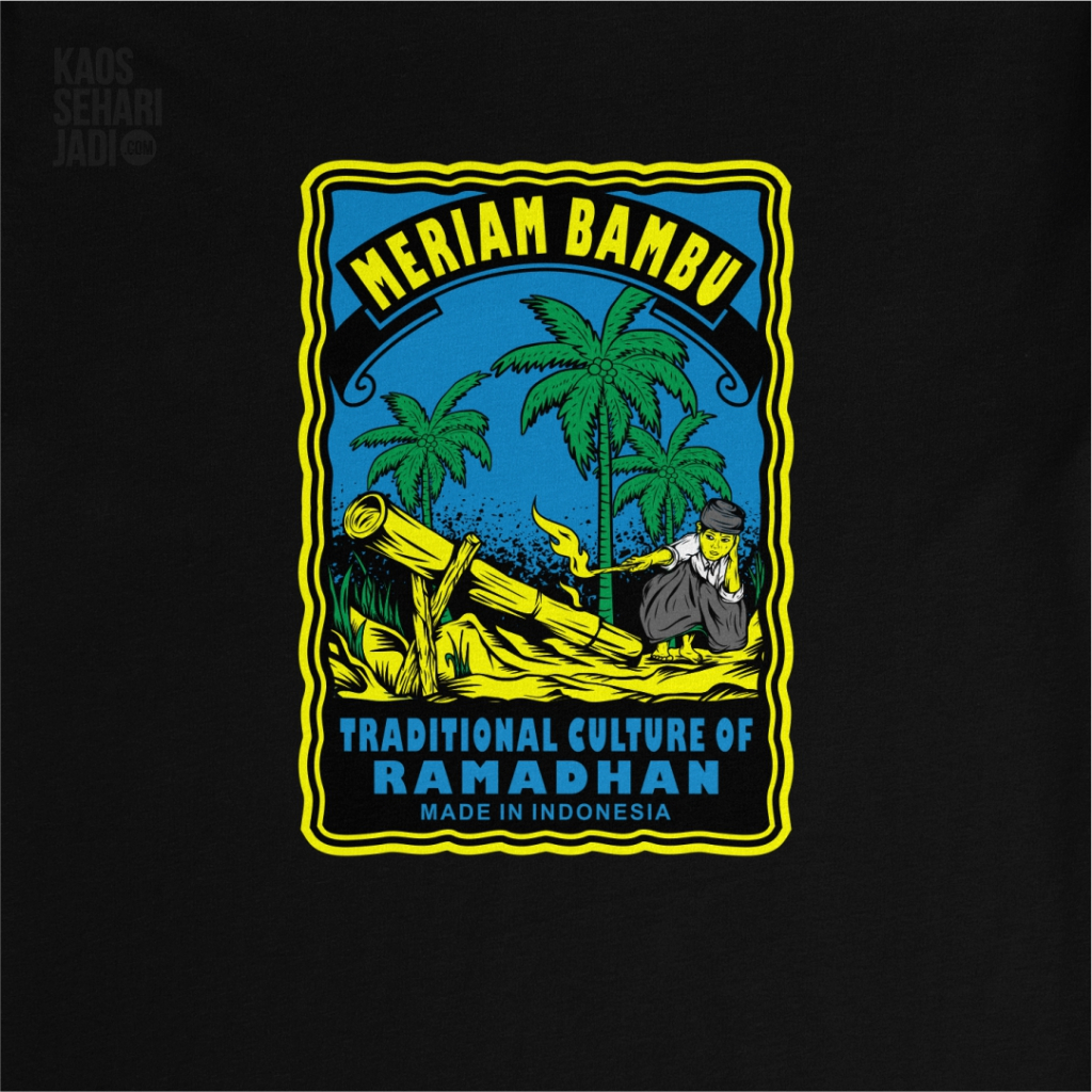 KSJ T-shirt Meriam Bambu Kultur Tradisional Ramadhan Indonesia Graphic Baju Kaos Pria Wanita Hitam