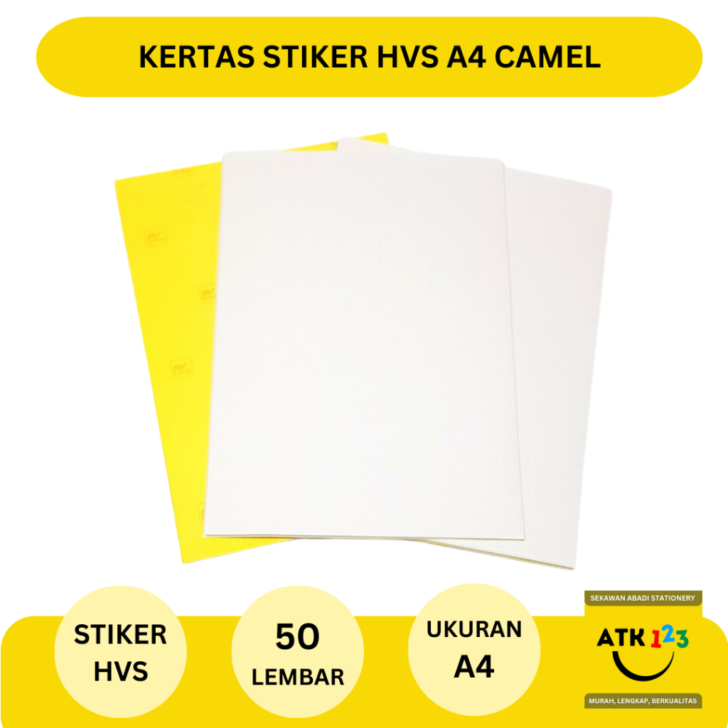 CAMEL Kerta Sticker HVS Doff / Kertas Stiker Ukuran A4 (Isi 50 Lembar) Stiker Camel