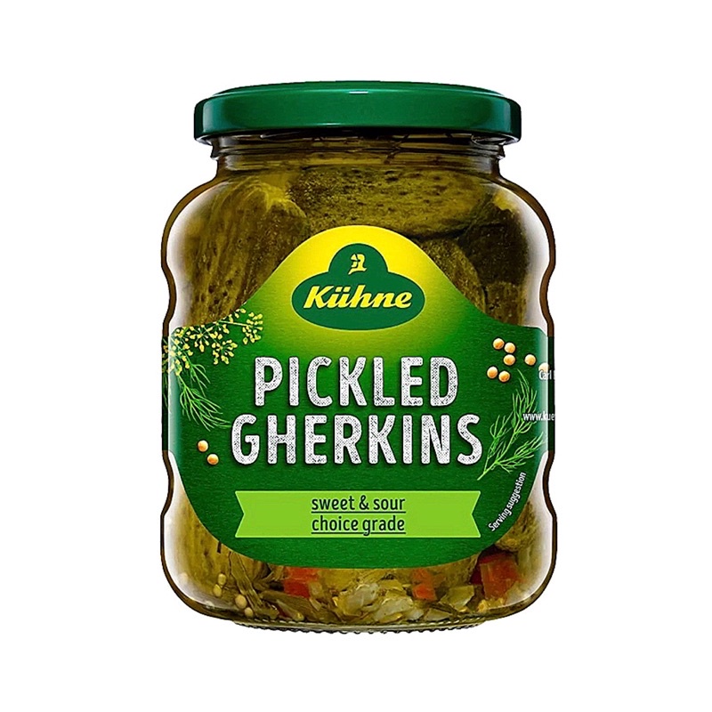 KUHNE Slices for Sandwiches Sweet & Sour/Pickled Gherkins Sweet & Sour/ Jalapeno Peppers/Kuhne Cornichons/Kuhne Red Cabbage 370ml