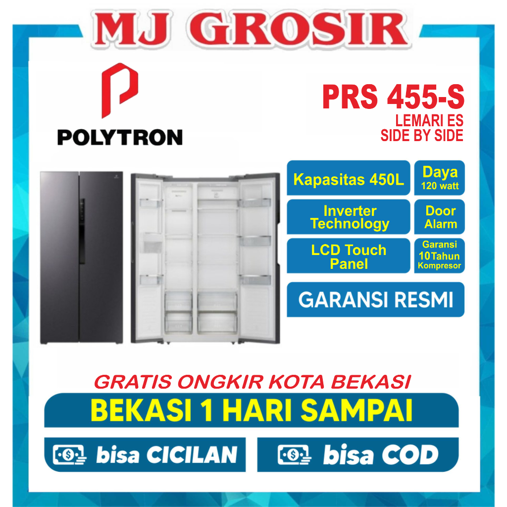 KULKAS POLYTRON PRS 520 Y / PRS 460 / PRS 451 / PRS 455 LEMARI ES 2 PINTU SIDE BY SIDE INVERTER TERLARIS DAN TERMURAH