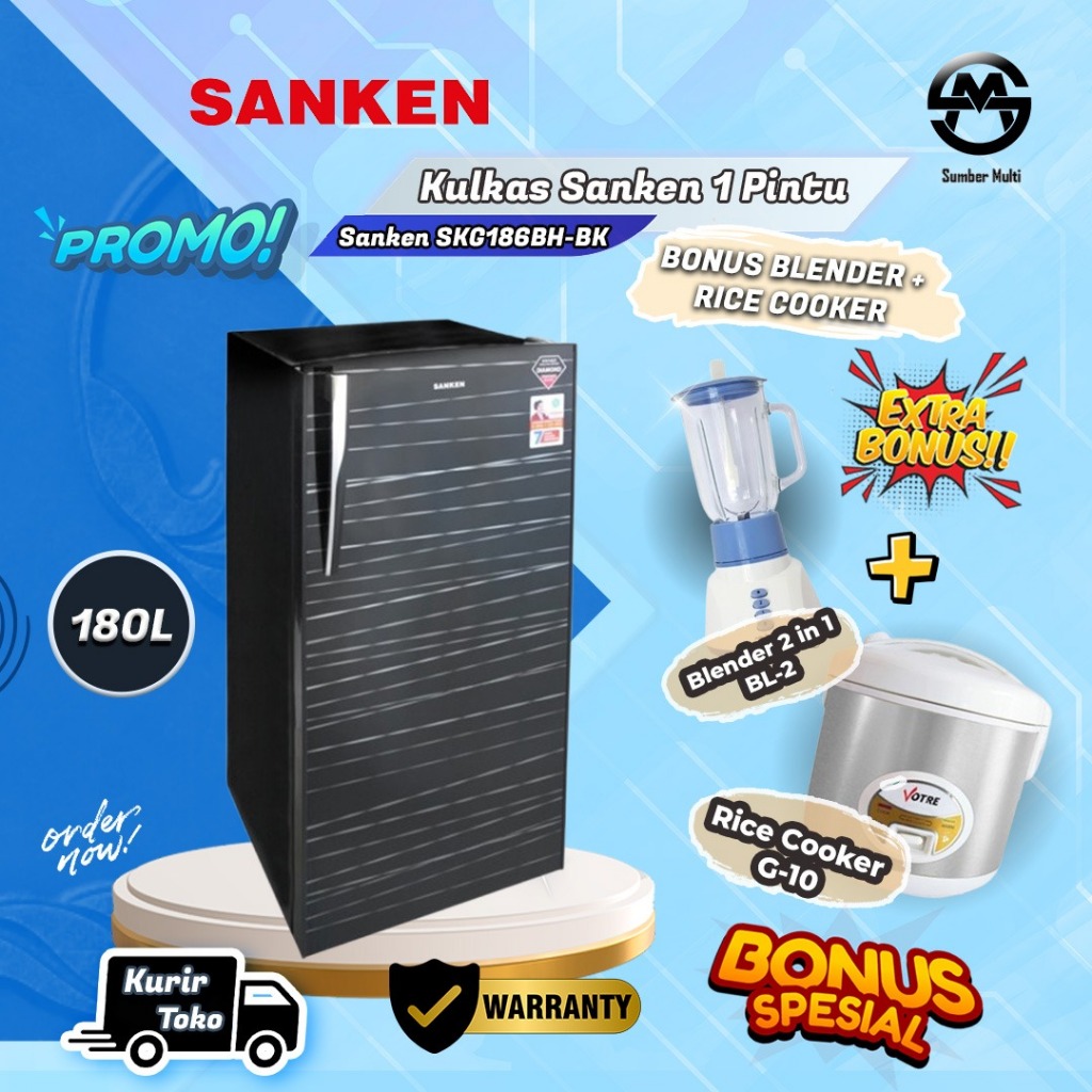 KULKAS SANKEN SKG 186 BONUS BLENDER / RICE COOKER / SETRIKA (KULKAS 1 PINTU 180 LITER)