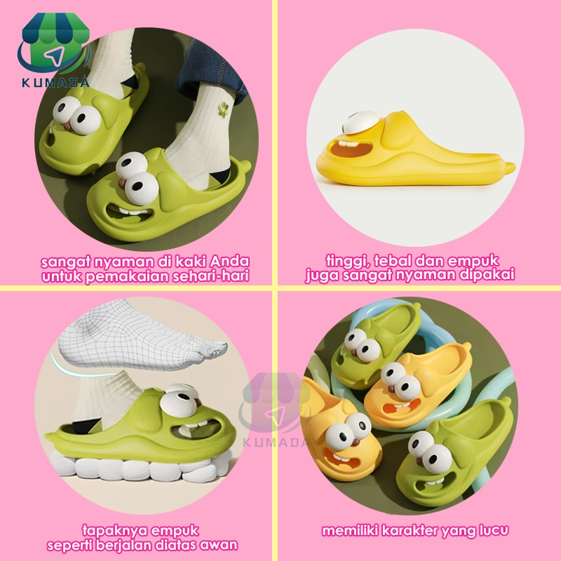 Sandal Wanita Anjing Bermata Besar Lucu Kartun Sandal Dan Sandal Rumah Dalam Ruangan Anti-slip Sandal Wanita