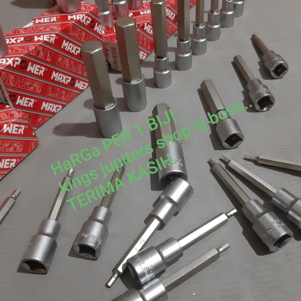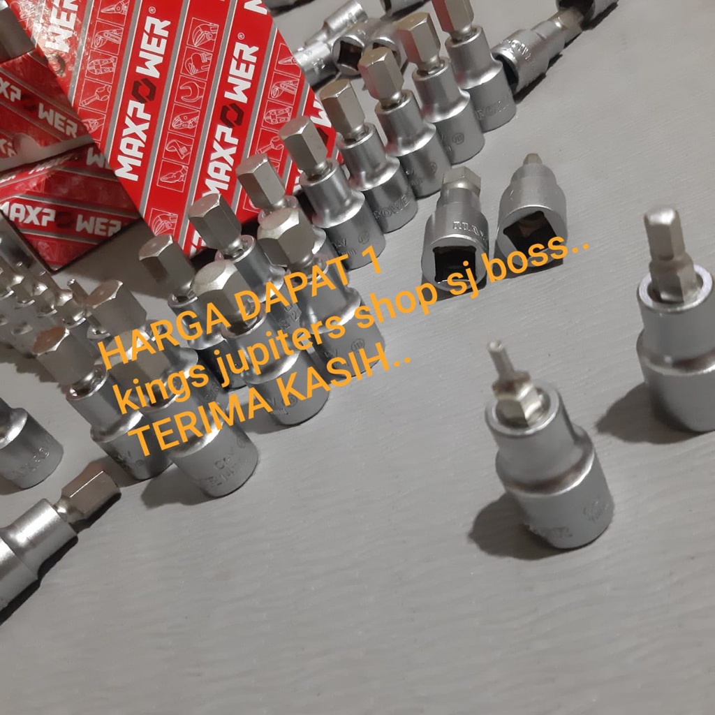 KUNCI SOKET L 4MM H4 1/2DR PENDEK atau PANJANG MAXPOWER mata KUNCI SOCK L 4MM H4 mata KUNCI SOK socket L 4 MM H4