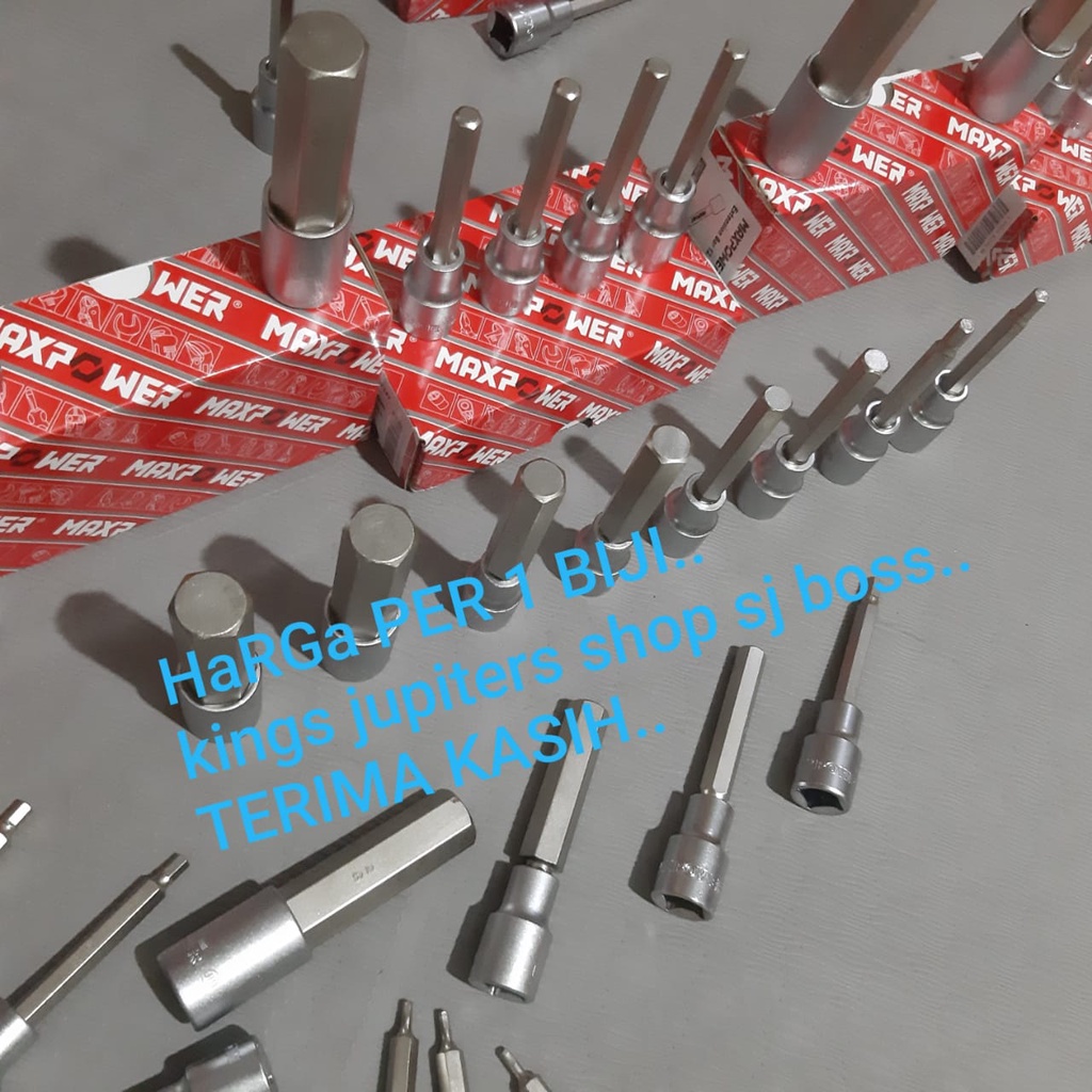 KUNCI SOKET L 6MM 1/2DR H6 PENDEK atau PANJANG MAXPOWER JIS MATA KUNCI SOCK L 6MM H6 MATA KUNCI SOK L 6MM 6 MM H6