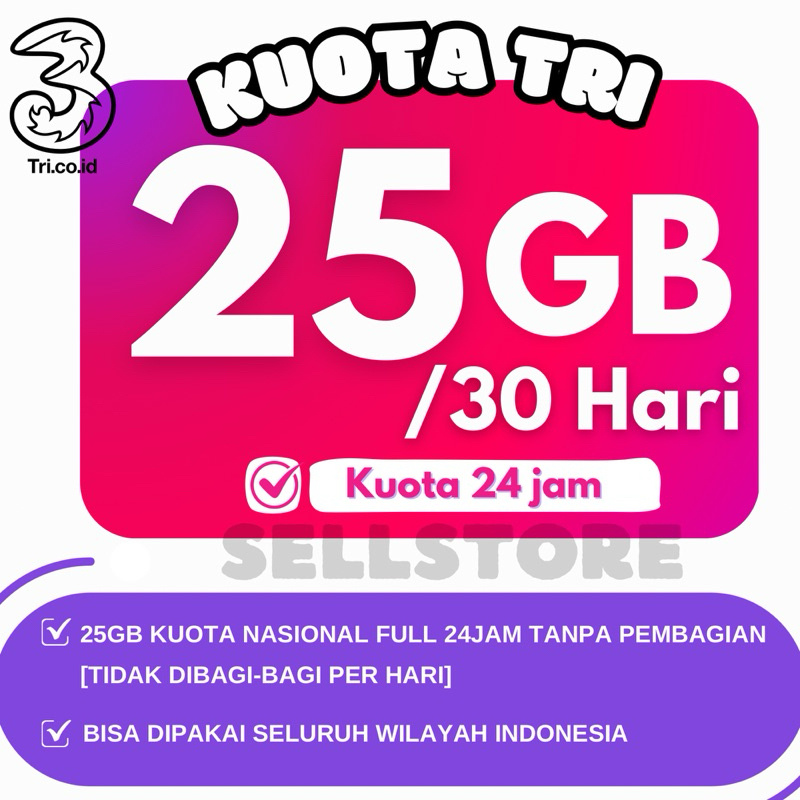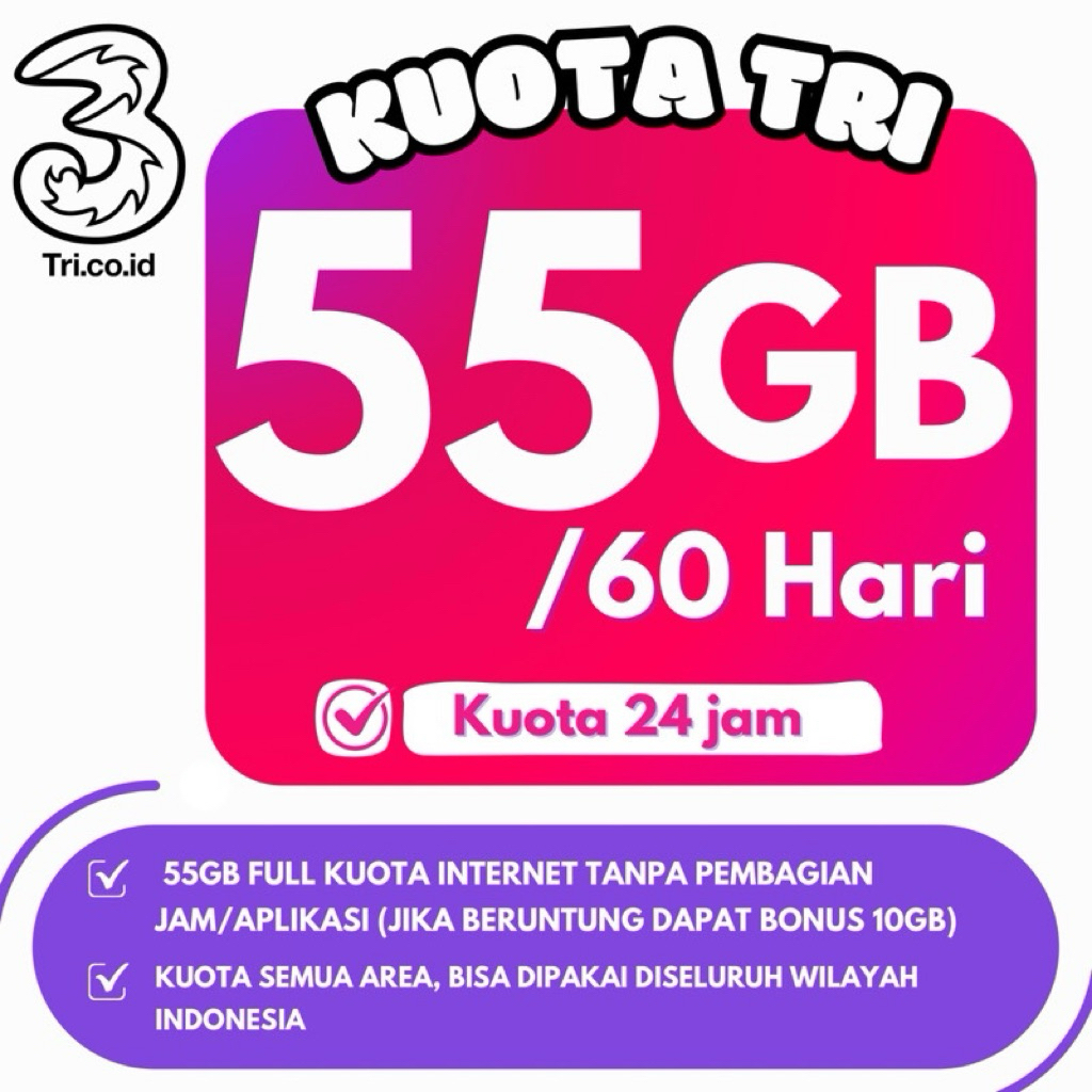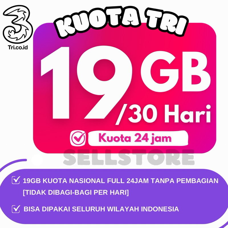 KUOTA TRI MURAH HAPPY 300GB 100GB 70GB 30GB FULL