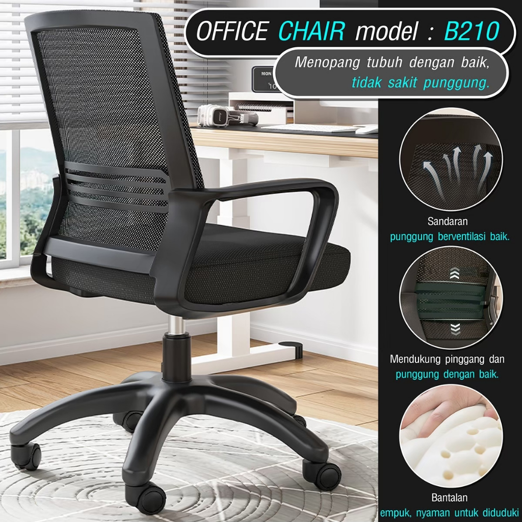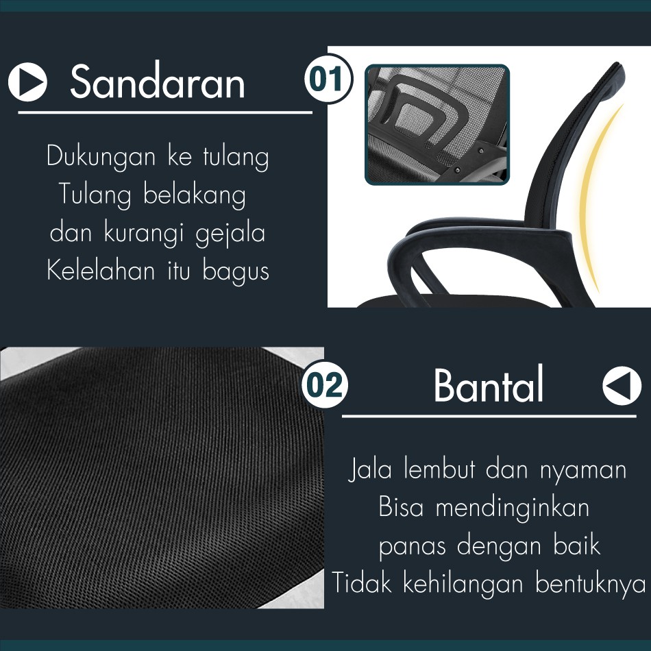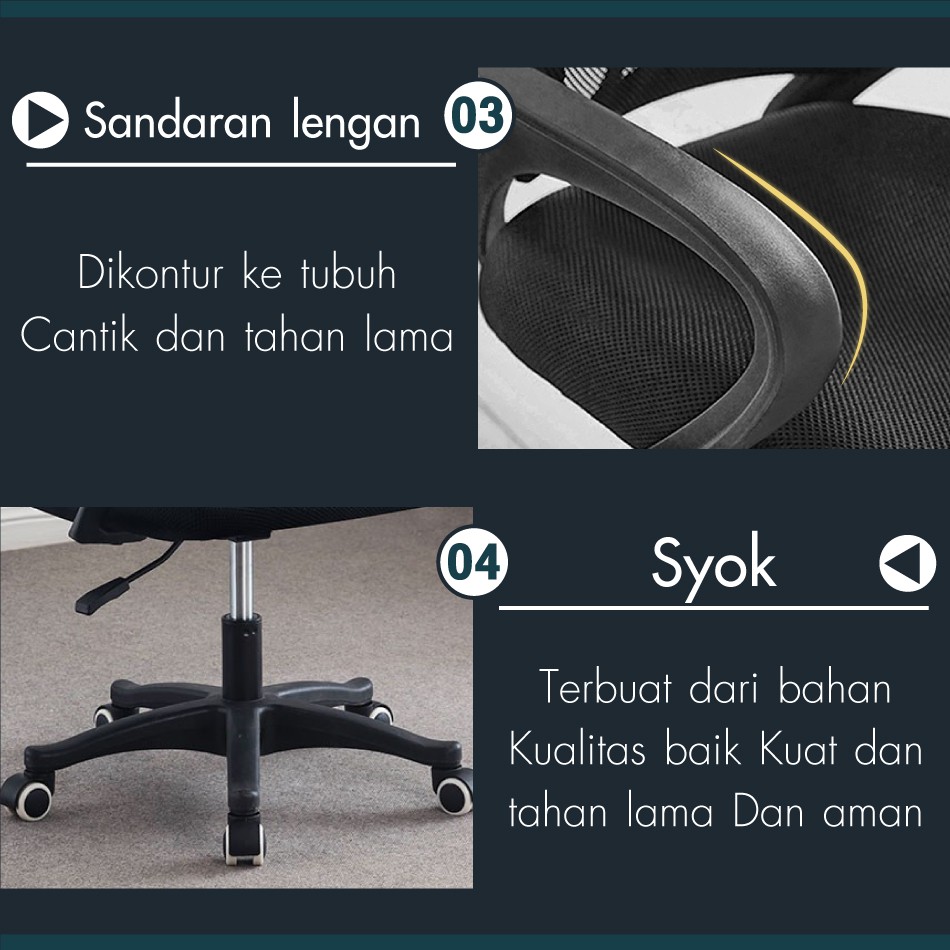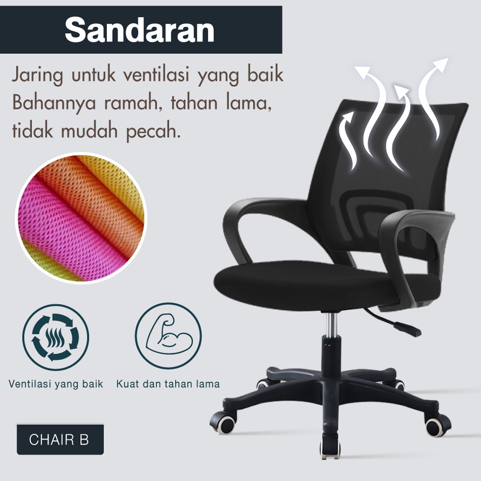 HTD SPORT Kursi Kantor Kursi Kerja Staff Chair Hidrolik Ergonomis Putar Nyaman KUAT HINGGA 100KG