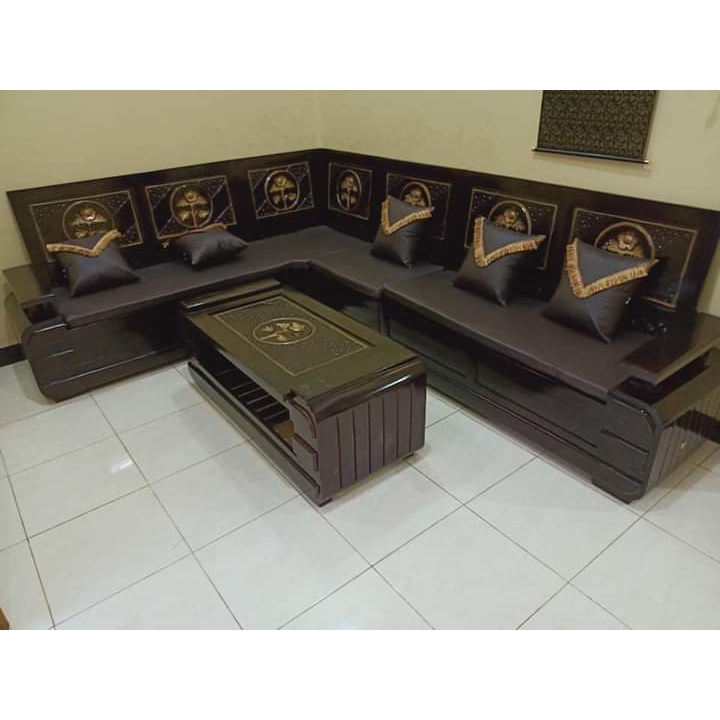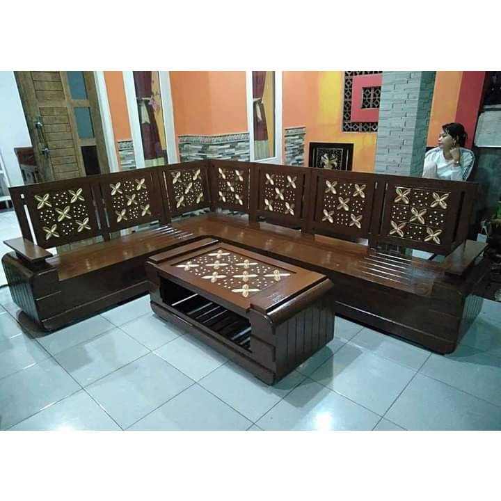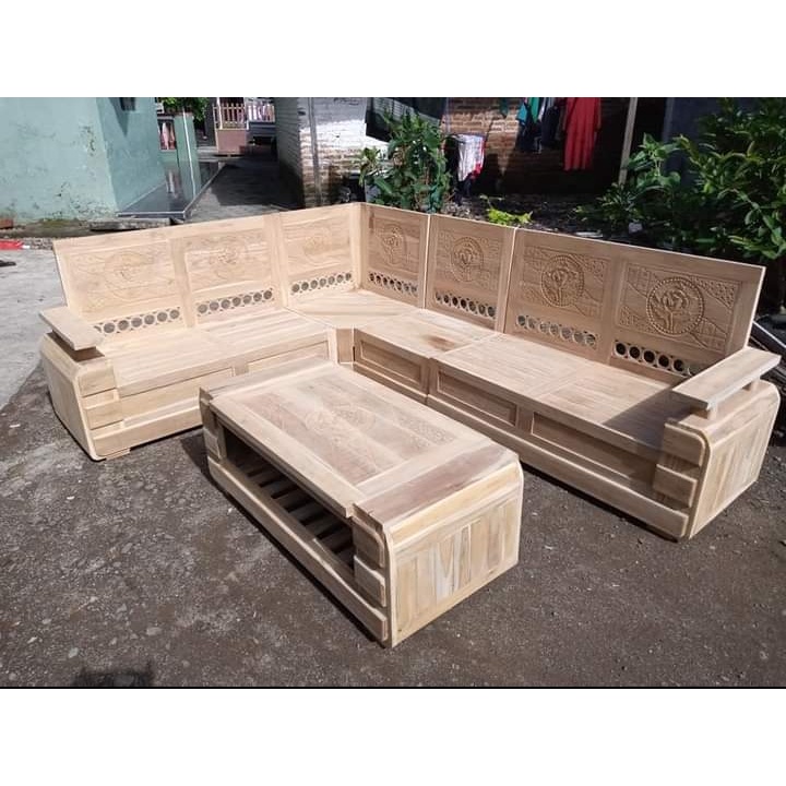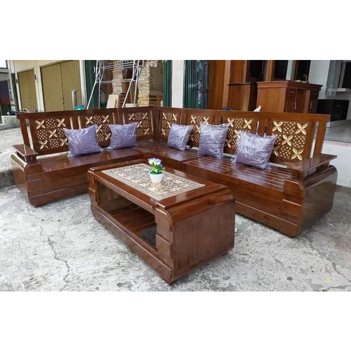 KURSI SUDUT JATI KURSI TAMU JATI KURSI POJOK L KURSI SUDUT KAYU MINIMALIS