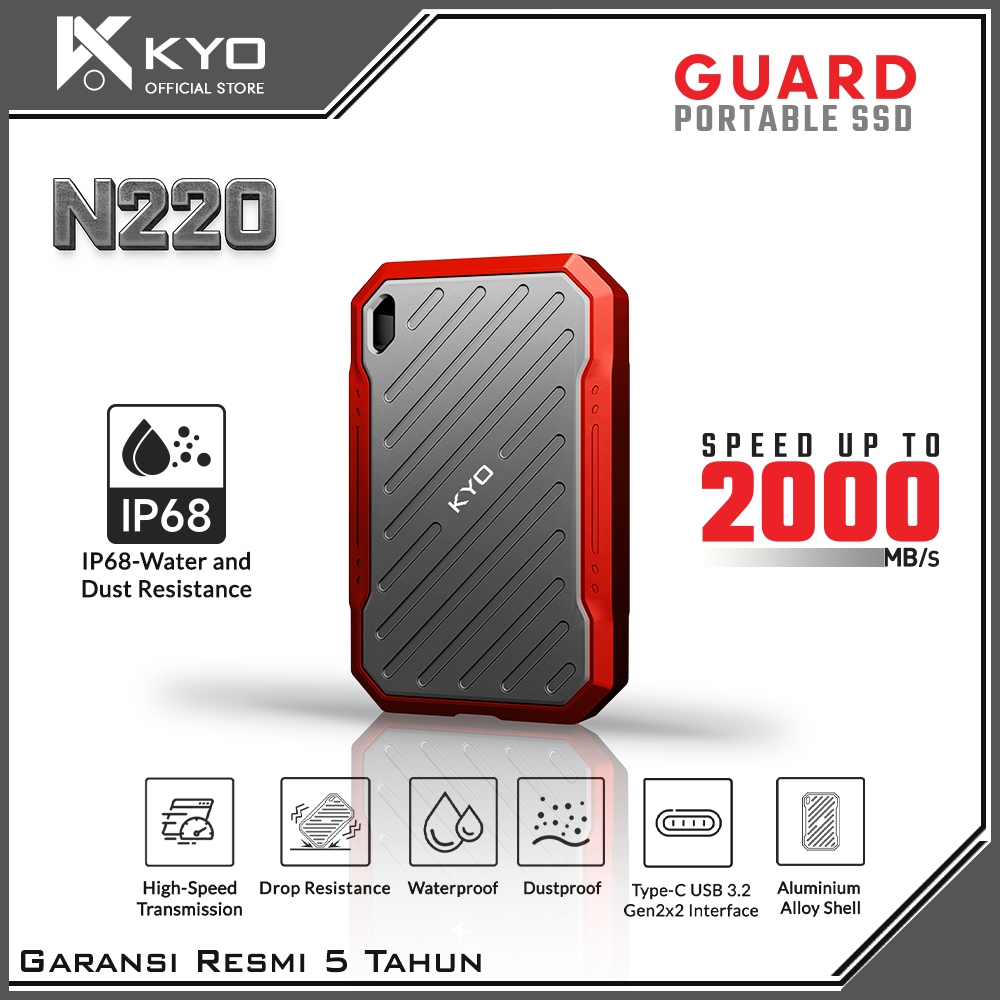 KYO Guard N220 500GB 1TB 2TB 4TB 8TB Durable IP68 Water and Dust Resistance USB 3.2 Gen 2x2 USB-C USB-A SSD Drive Up To 20Gbps External SSD Case Outdoor Portable SSD