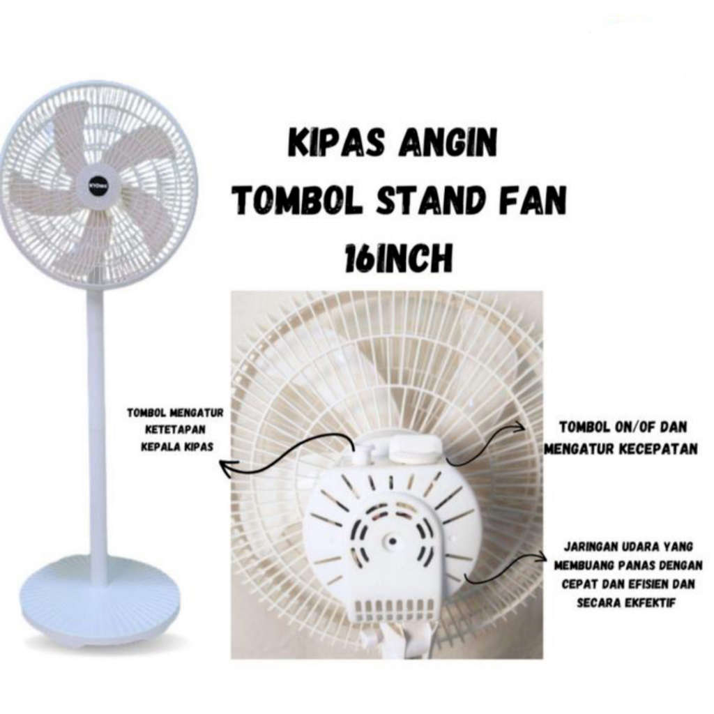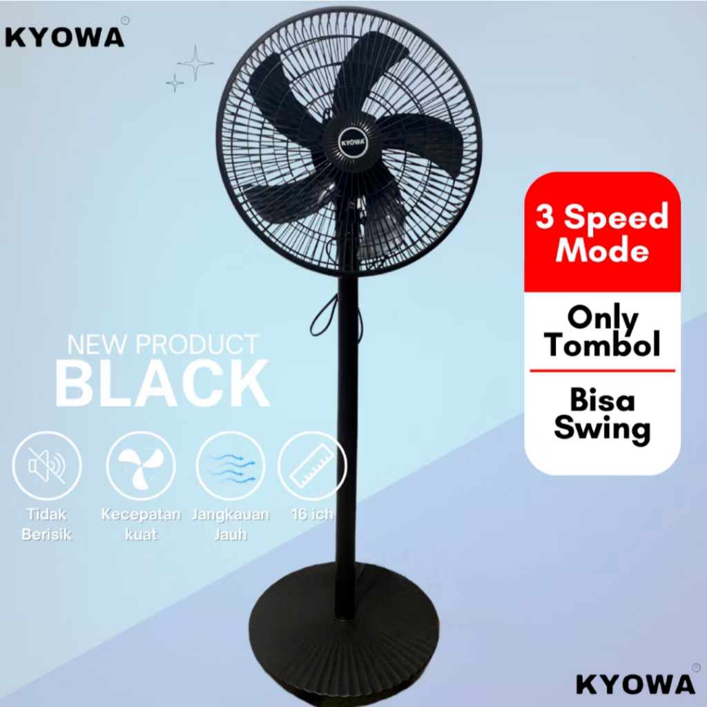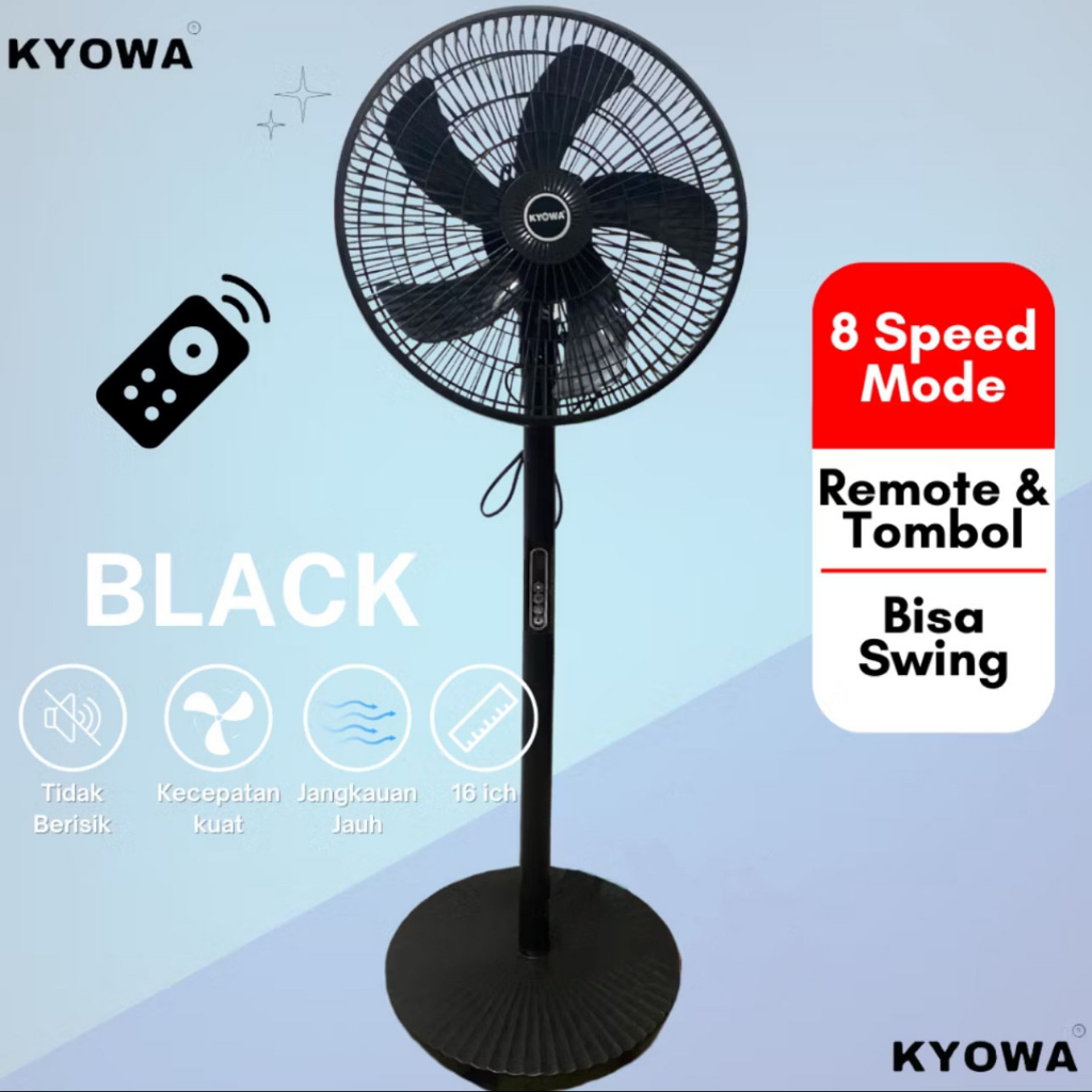 KYOWA Kipas Angin Berdiri 16 Inch / Model Remote & Tombol / Angin Kuat / Desain Modern / Bisa Swing