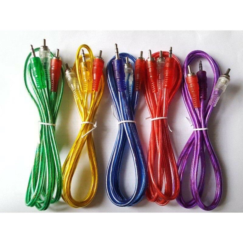 Kabel 2 RCA To Jack Mini Stereo Transparan Kabel Aux 2 in 1 Audio 1.5Meter Kabel Audio Hp Ke Speaker