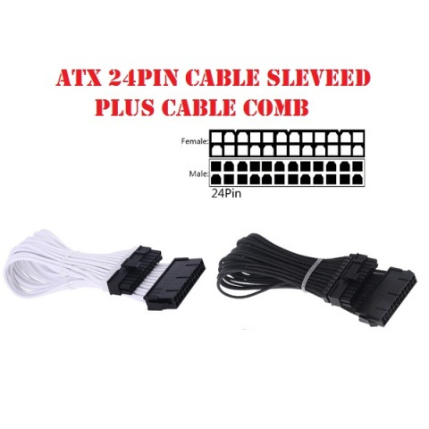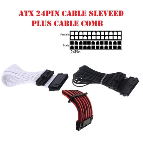 Kabel ATX 24 Pin Extension PSU Power Mobo 24pin Sleeve Cable