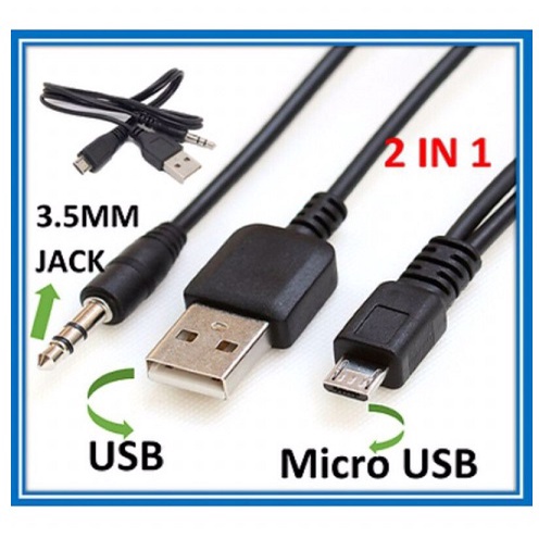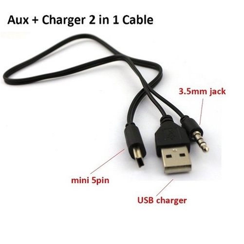 Kabel AUX 2 in 1 Jack 3.5mm Mini USB / Micro USB Charger Input USB Mp3 Audio Cable Speaker Portable 5 Pin 2 to 1