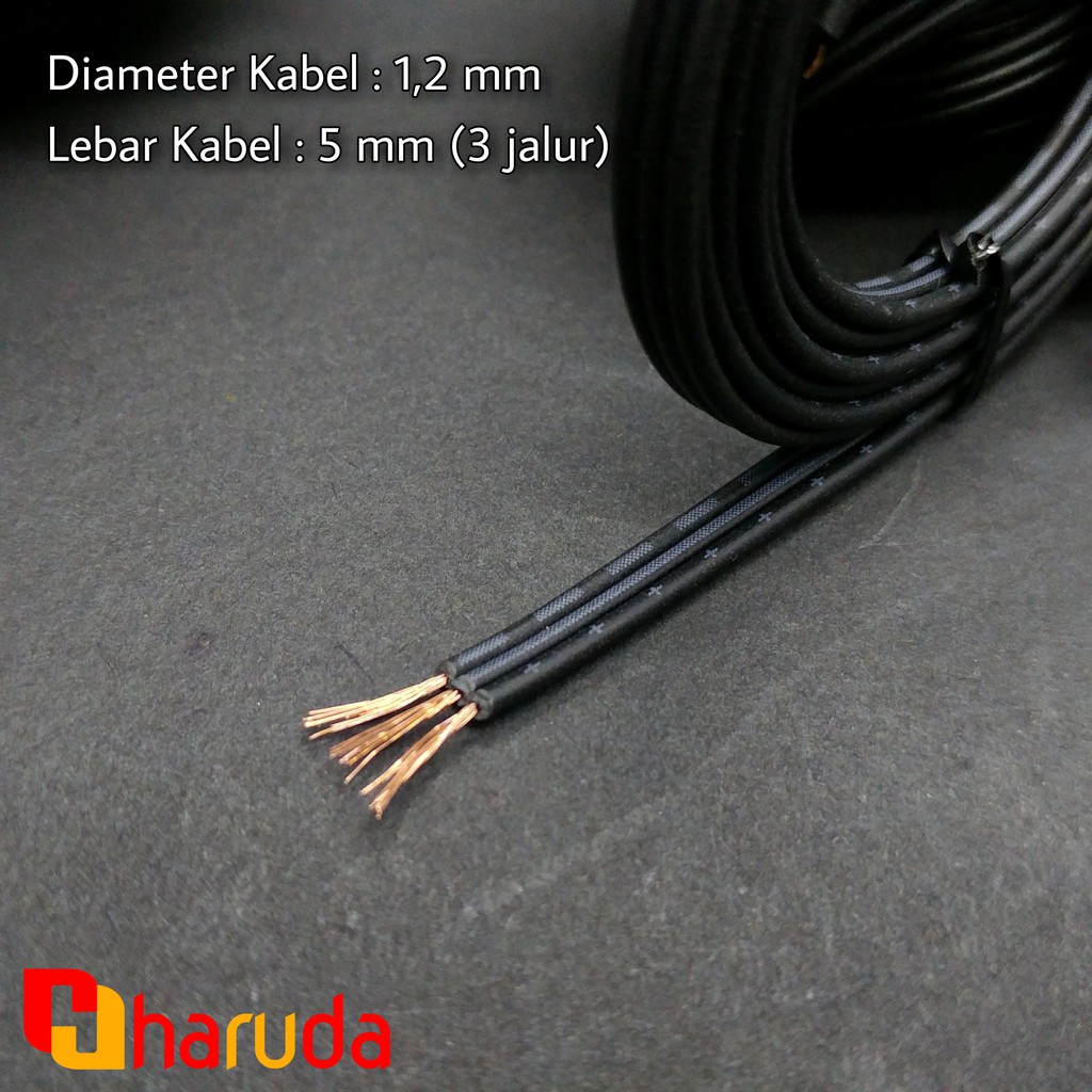 Kabel AWG 24 3 Jalur - 3 x 0,5 Hitam Per 1 Meter