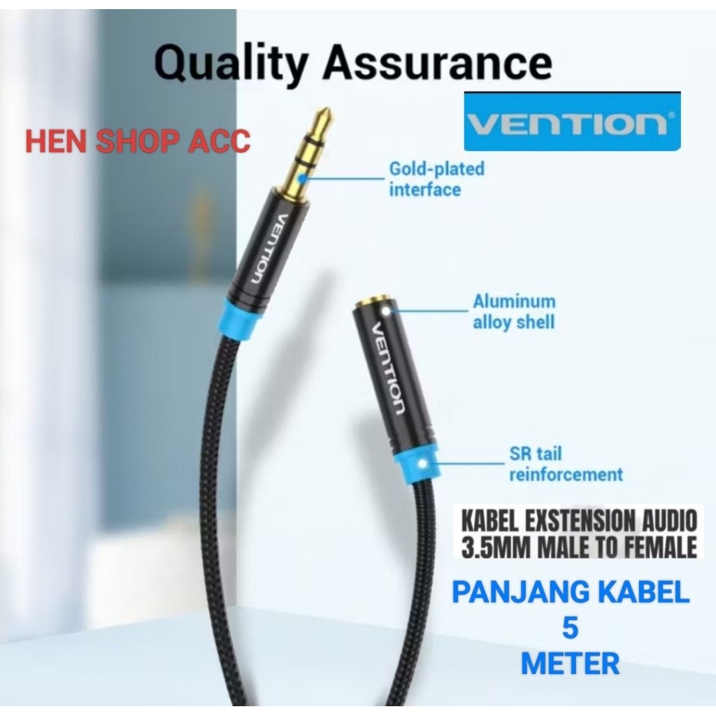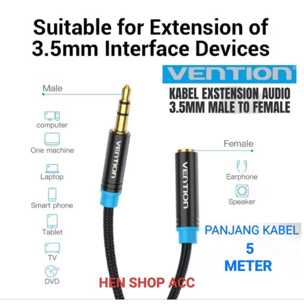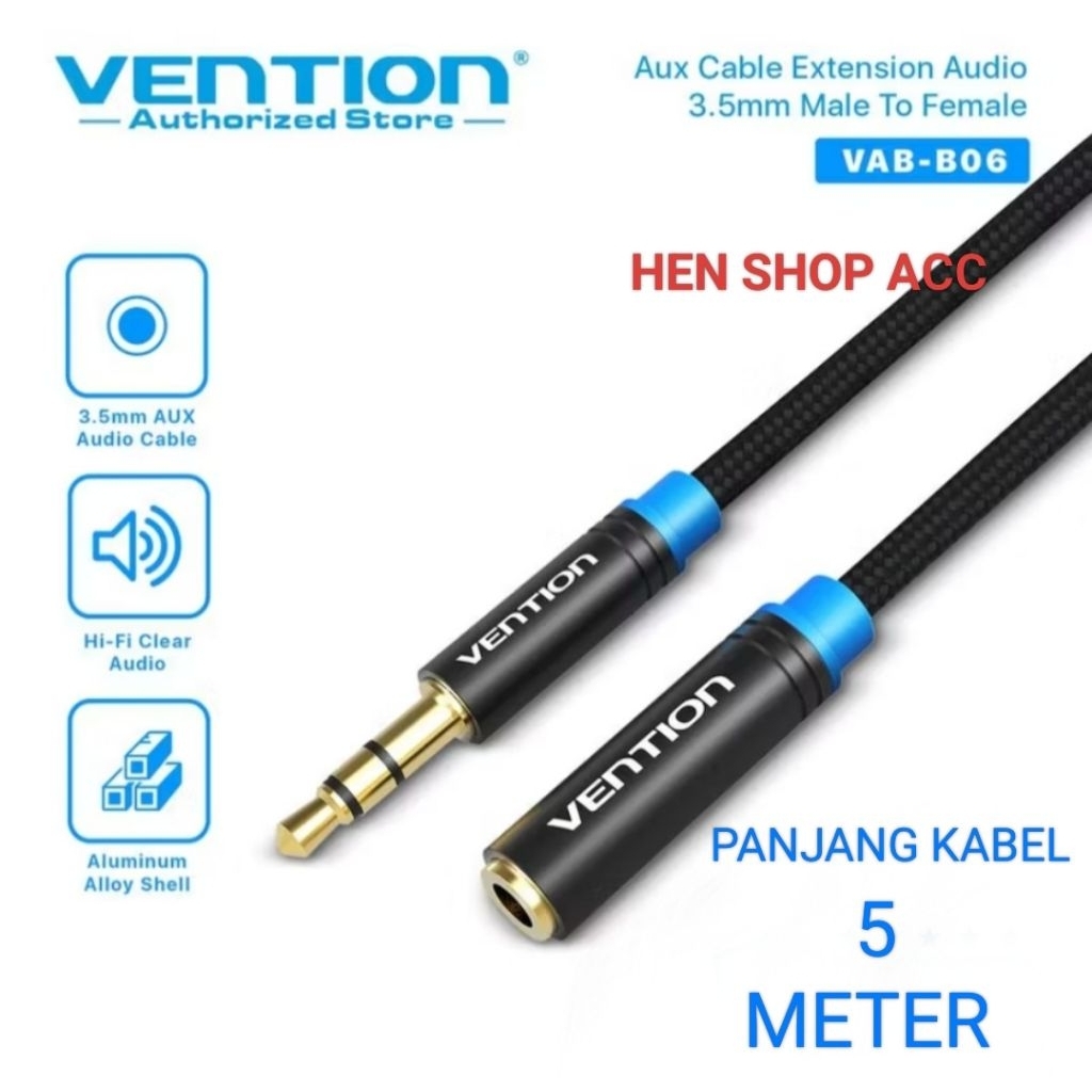 Kabel Audio AUX Extension 3.5mm Male to Female - VAB B06 Panjang kabel 5 meter