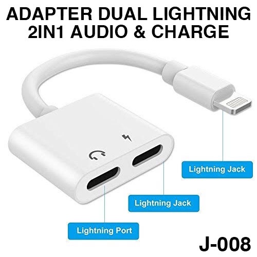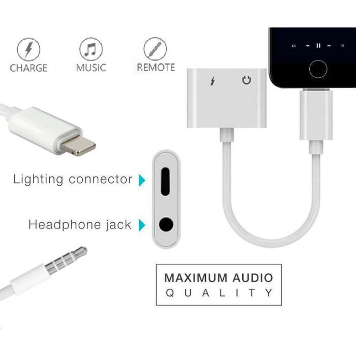 Kabel Audio Adapter Splitter Converter 2in1 USB Lightning to Headphone Jack 3.5mm + Charger Port