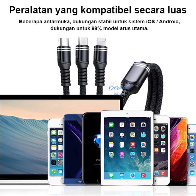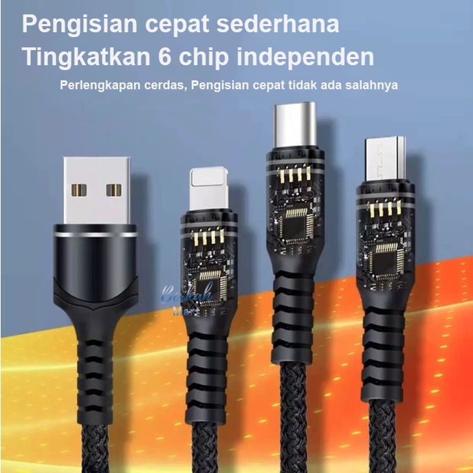 Kabel Charger 3 in 1 Pengisian Daya Cepat Micro Usb / Type C / Lightning 2A 2.4A 6A Support for Android / iOS Triple Kabel 66W 65W Fast Charging Panjang 102cm