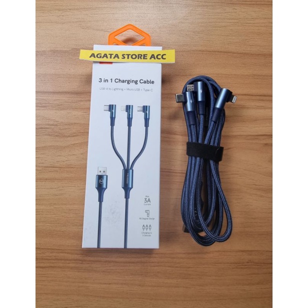 Kabel Charger Gaming 3 in 1 ( Micro USB / Type C / Lighting ) 3A 1.2M Original