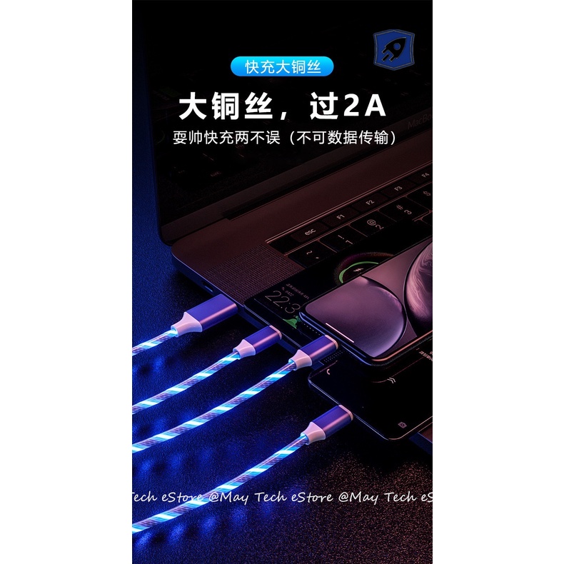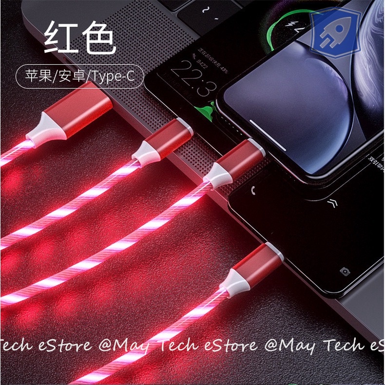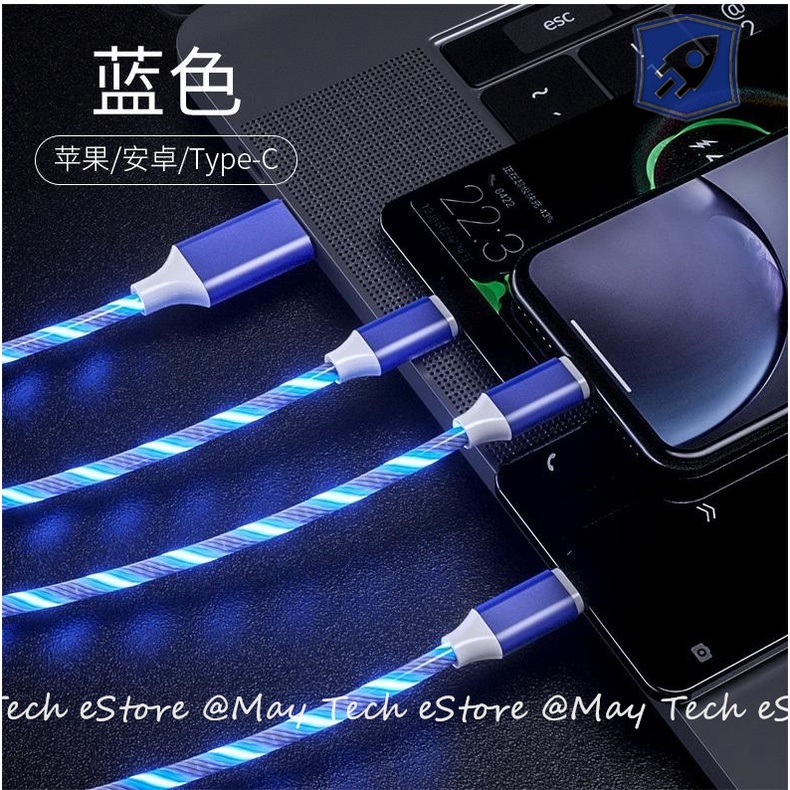 Kabel Charger iPhone / Android Charger iOS / Micro USB / Type C Kabel Charger Lampu LED Light