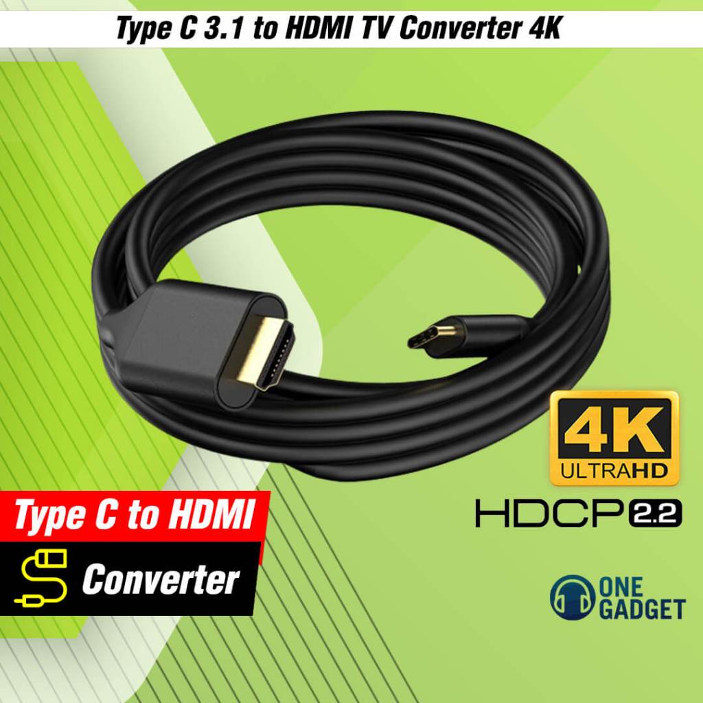 Kabel Converter USB Type C to HDMI 1080P 4K | Konverter Type C ke HDMI Cable Adapter 1.8m Garansi 1 Bulan