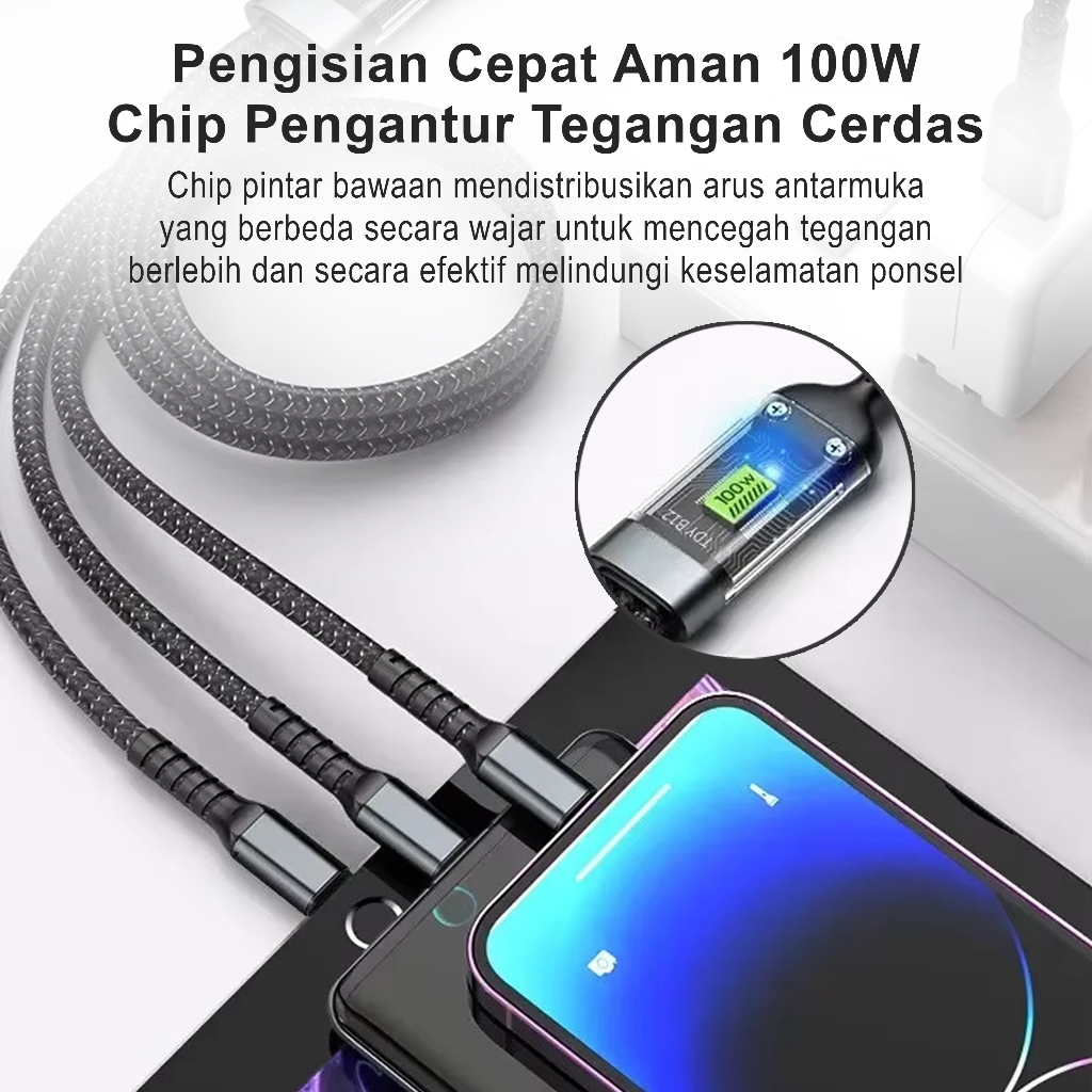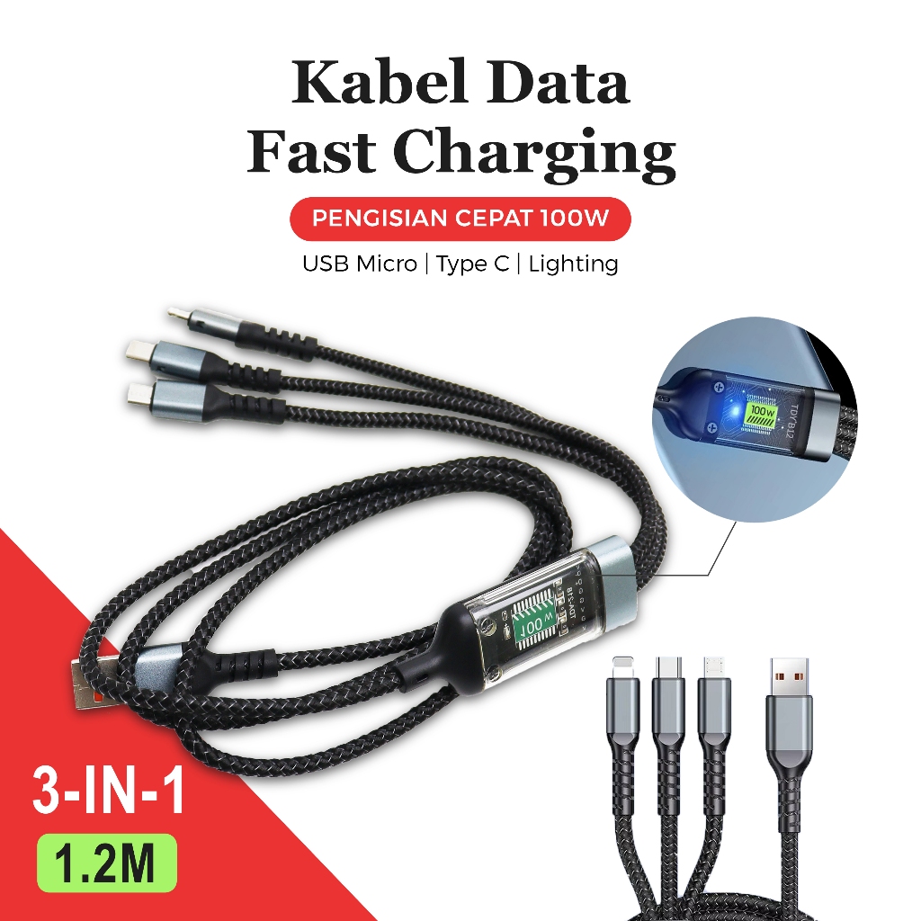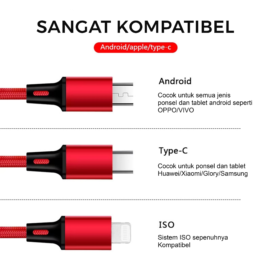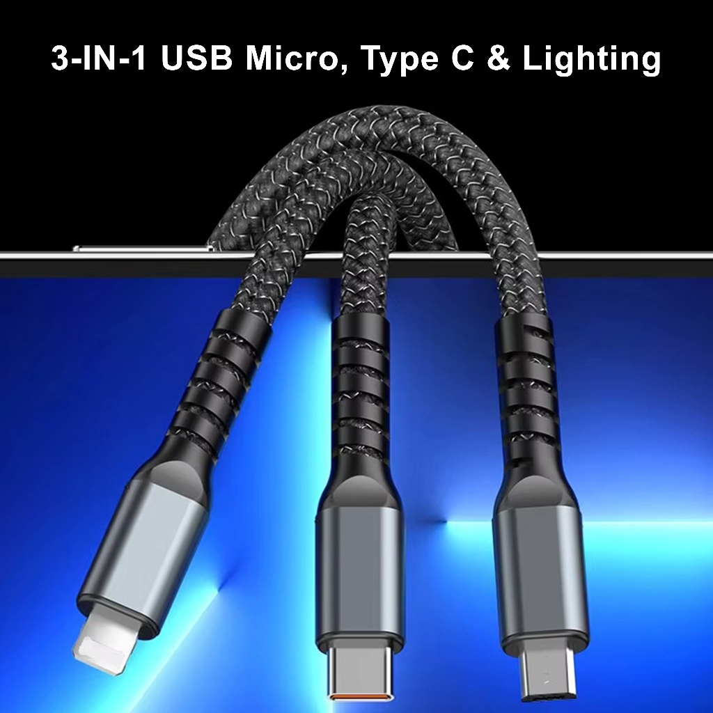 Kabel Data 3 in 1 Fast Charging Untuk Android IOS Dan Type C Model Kabel Lighting Micro USB