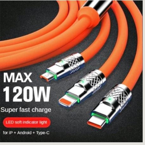 Kabel Data 6A ( 3in1 ) Usb To Micro / Usb To Type C / Usb To Lightning 120W Super Fast Charging 120Watt